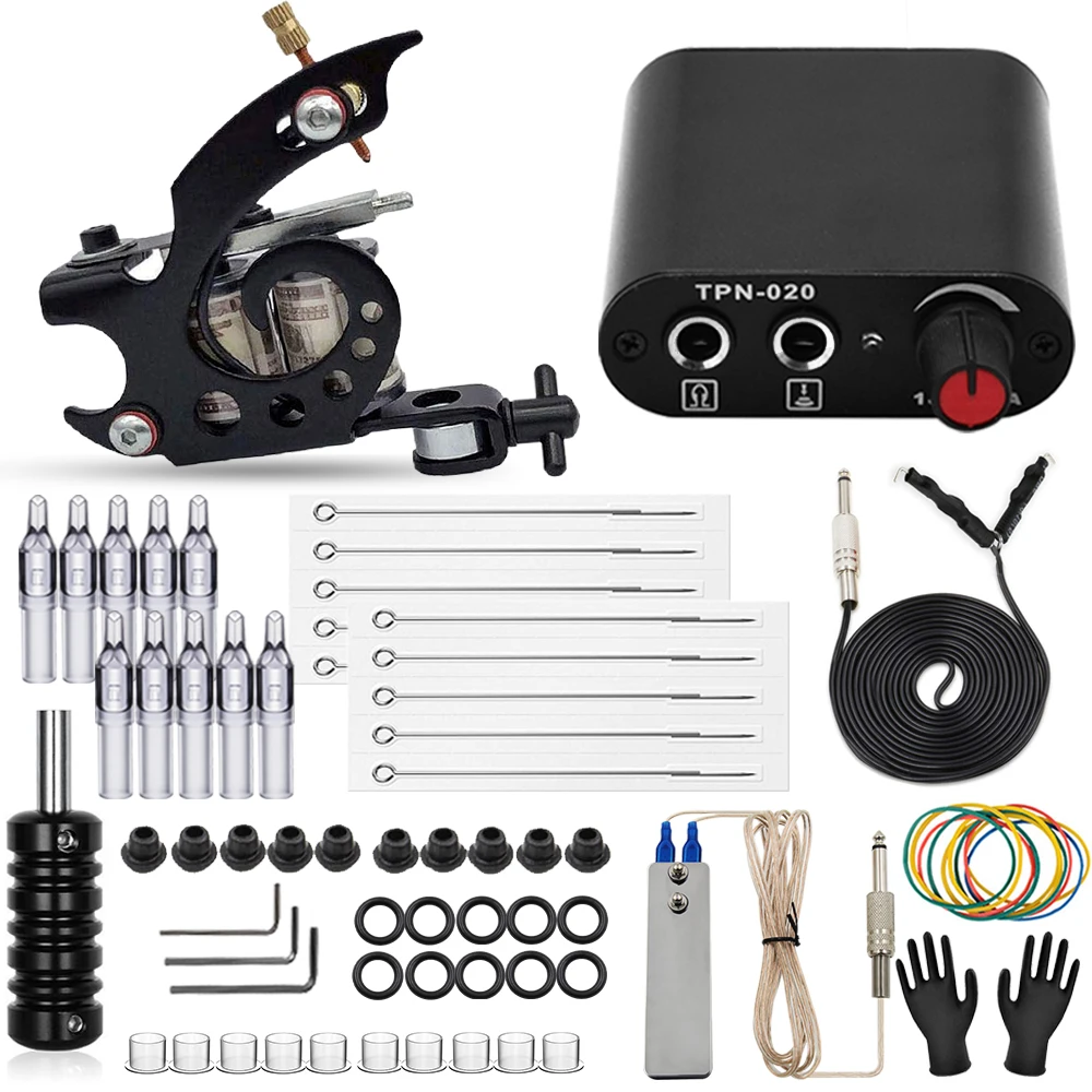 Набор для татуировки, катушка, машинка для татуировки, пистолет, набор с питанием для татуировки, ножной переключатель, зажим для педали, шнур для тату, для начинающих, поставки