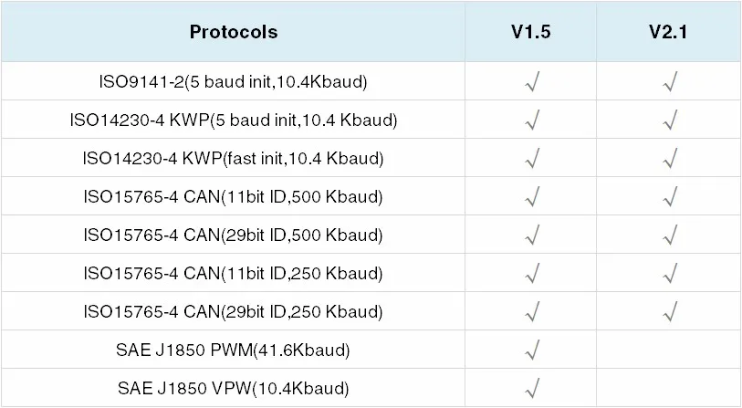 Прошивка V1.5 поддерживает SAE J1850 PWM и SAE J1850 VPW для автомобилей Ford.