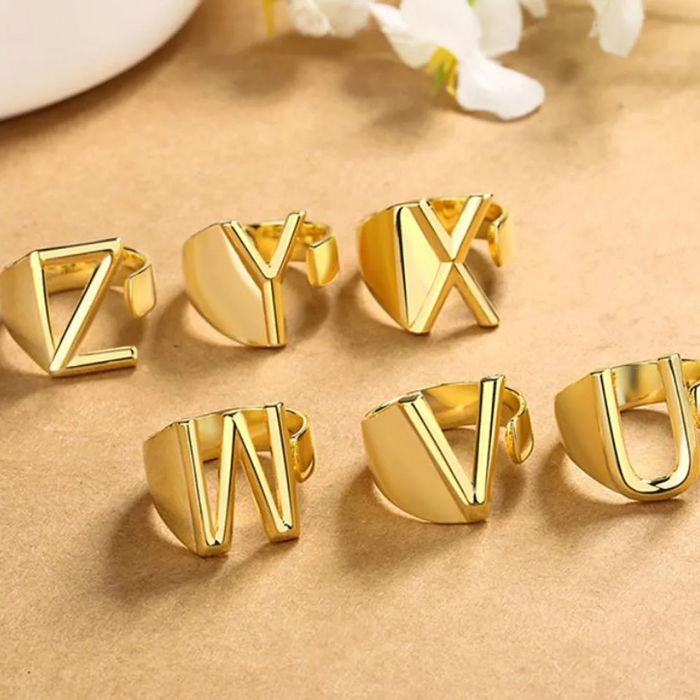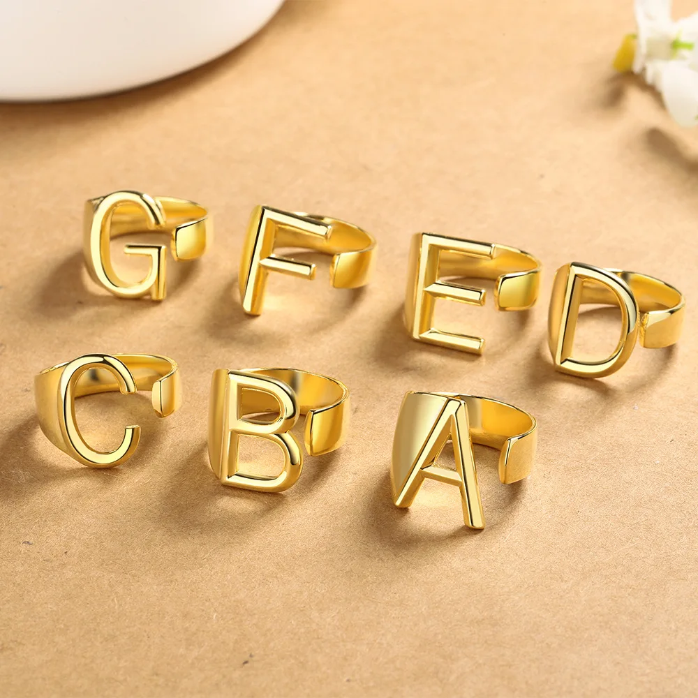 925 пробы серебряные большие полые A-Z регулируемые открытые золотые кольца инициалы имя Алфавит женские ювелирные изделия