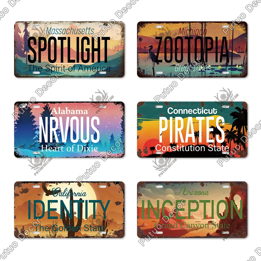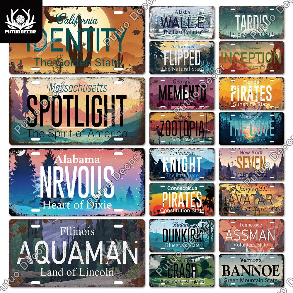 Putuo Декор Американский состояние Винтаж лицензии пластина США иллюстрации жестяная вывеска металлическая пластина для Гараж Берлога клуб настенный художественный Декор