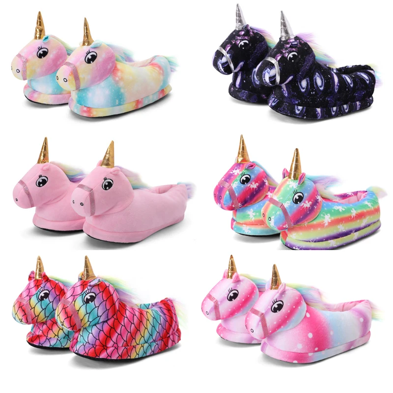 Пижамные туфли с единорогом для взрослых и детей тапочки с единорогом детские тапочки детская обувь для девочек