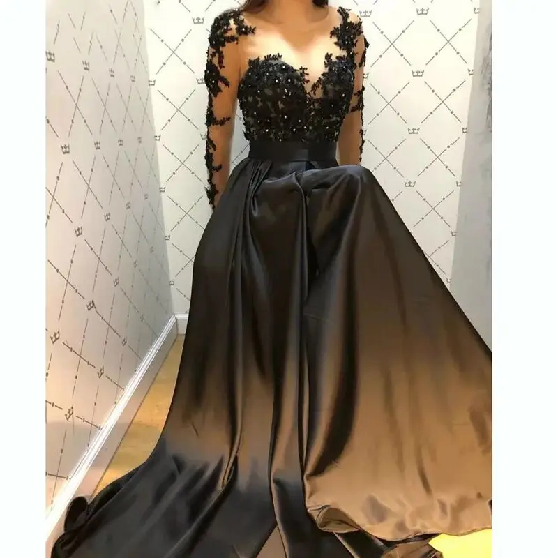 3d-цветы кружевные черные платья с длинным рукавом для выпускного в...