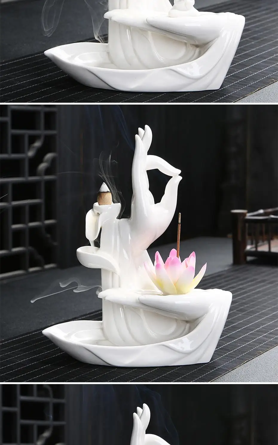 Подарок 10 шишки белый Керамика Ладан курильница с Буддой ручной обратного Ладан горелки Лотос Ладан палка-держатель для телефона