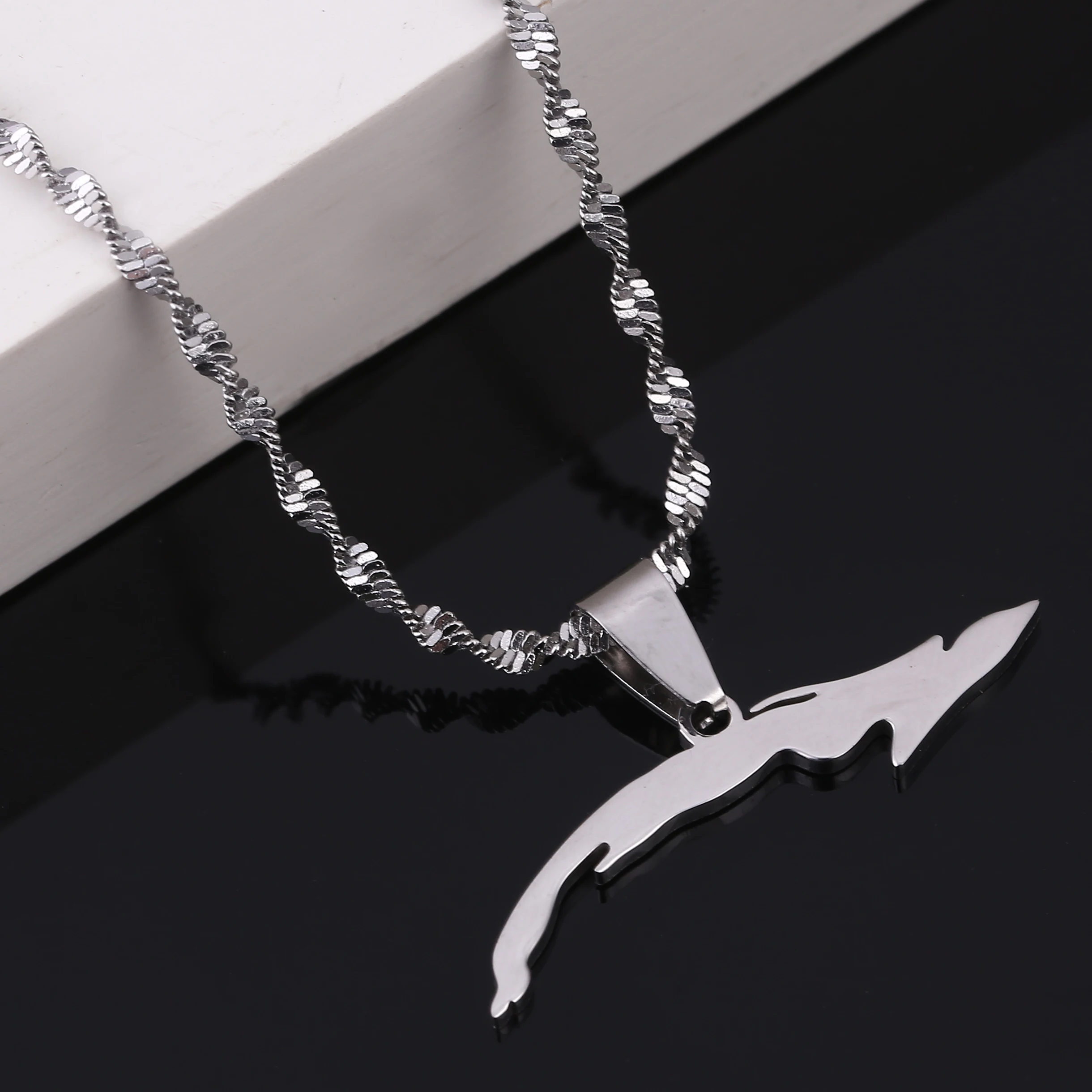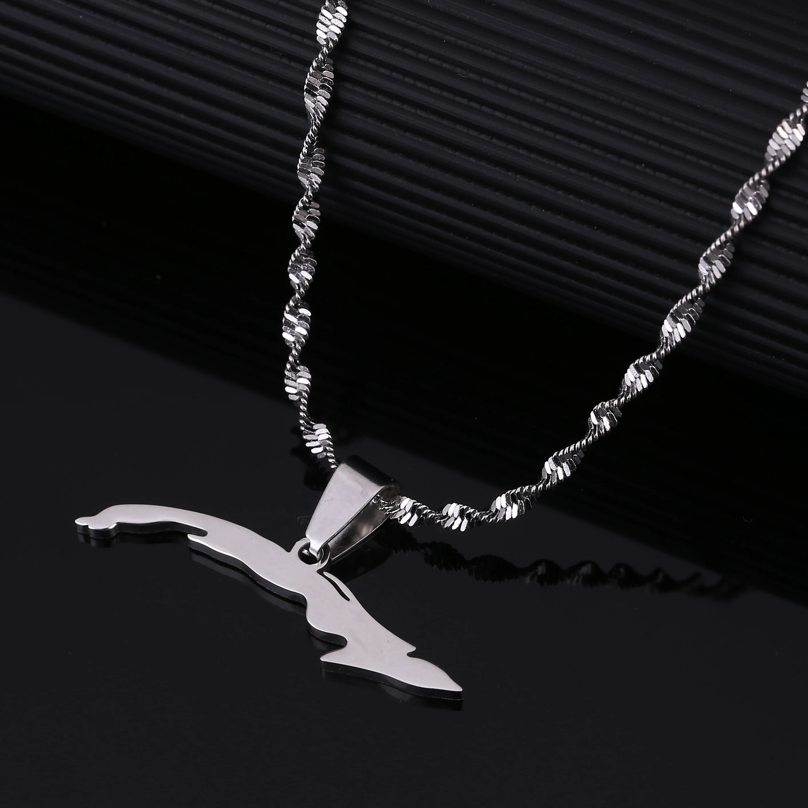 Stainless Steel Silver Color Cuba Map Pendant Necklace