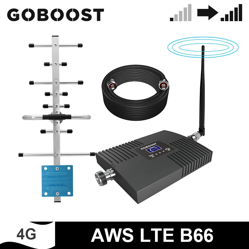 Усилитель сигнала GOBOOST 4G LTE AWS Band 66, усилитель сотовой связи мобильный телефон, Ретранслятор с антенной 10 м, комплект коаксиального кабеля
