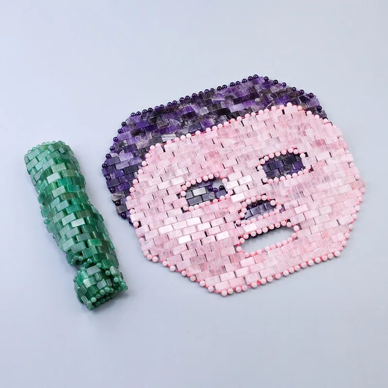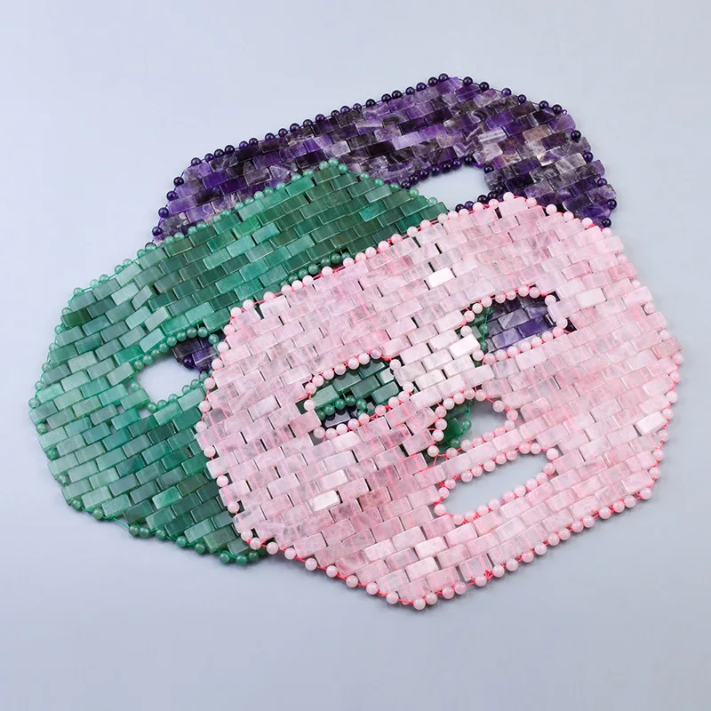 Розовая кварцевая Нефритовая Маска массажер для лица Натуральный гуашь камень для лица спа холодная терапия кристальная маска релаксационный массаж красота инструмент новый