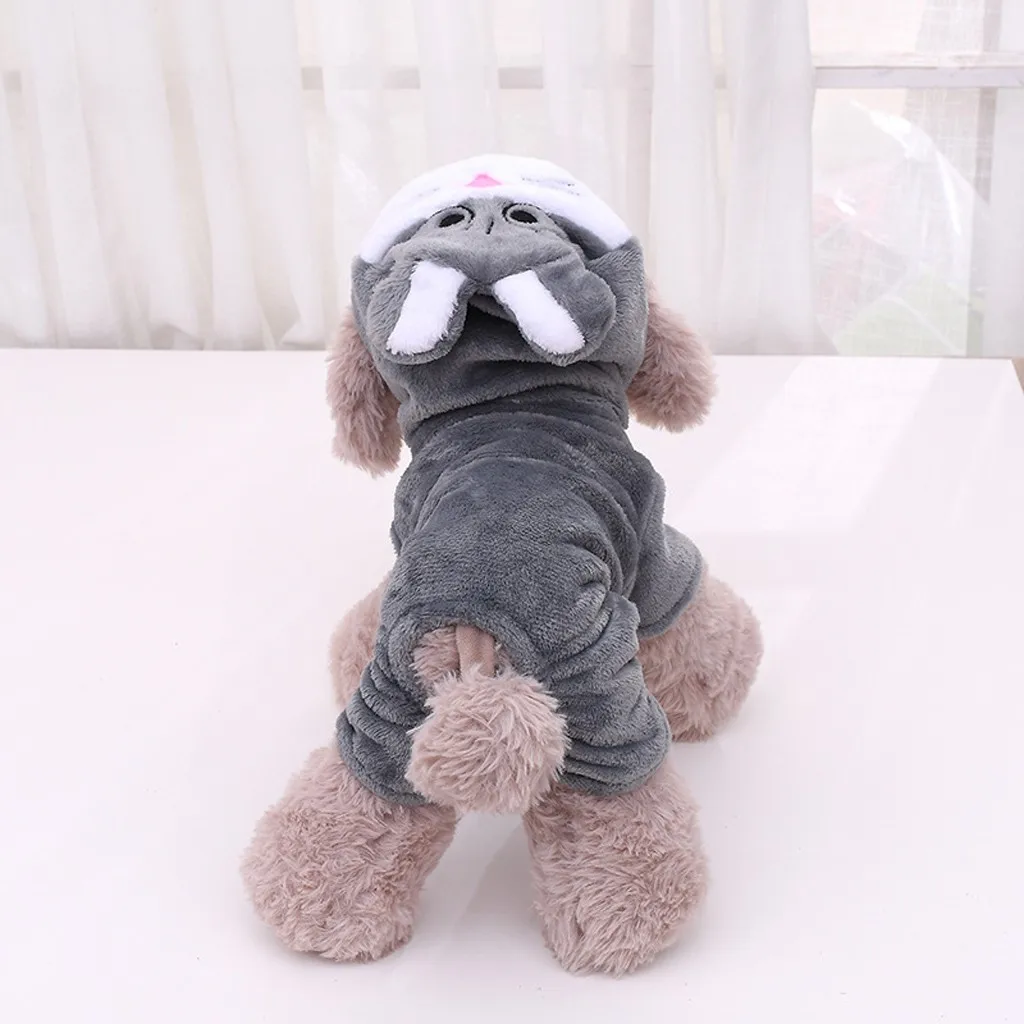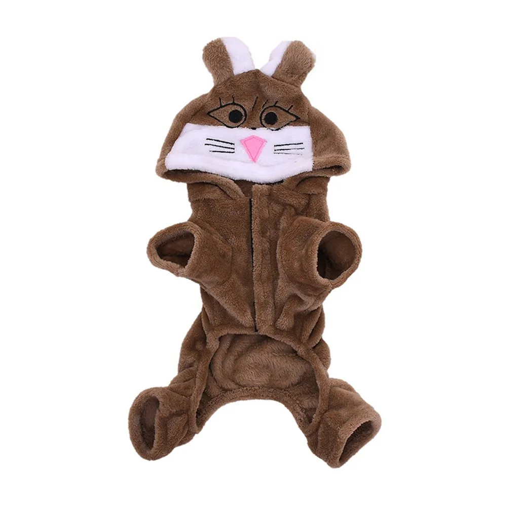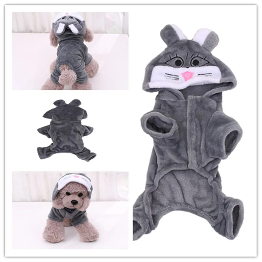 Одежда для маленьких собак четырехногая плюшевая одежда с вышивкой ушки кролика зимняя одежда для собак с капюшоном домашняя одежда