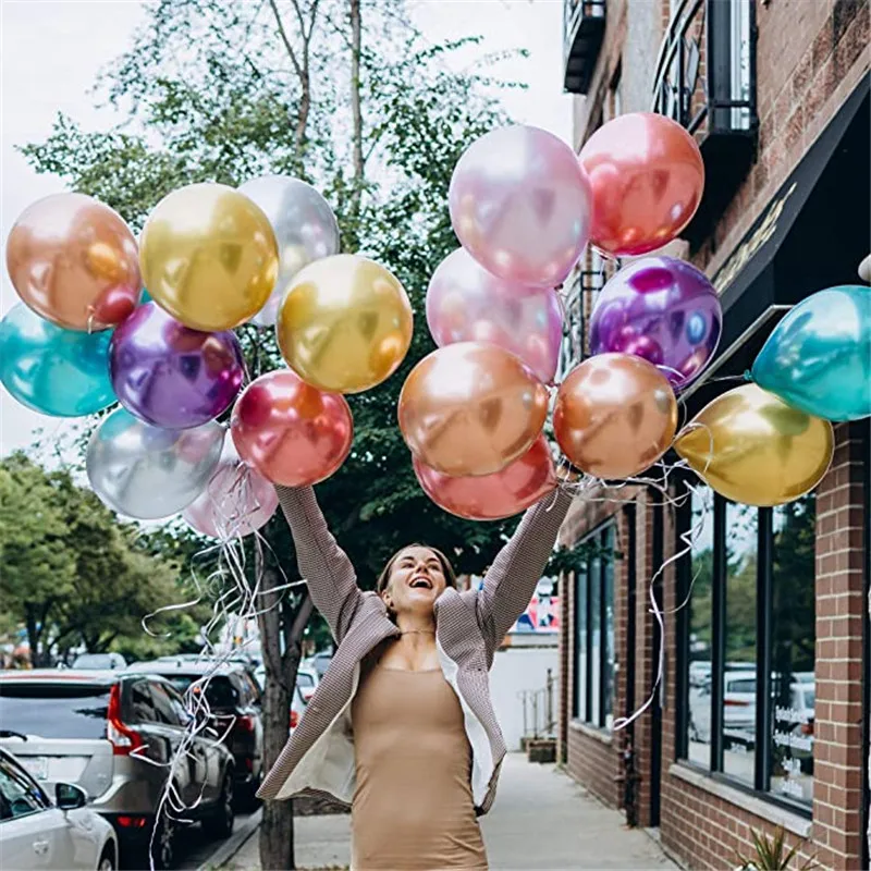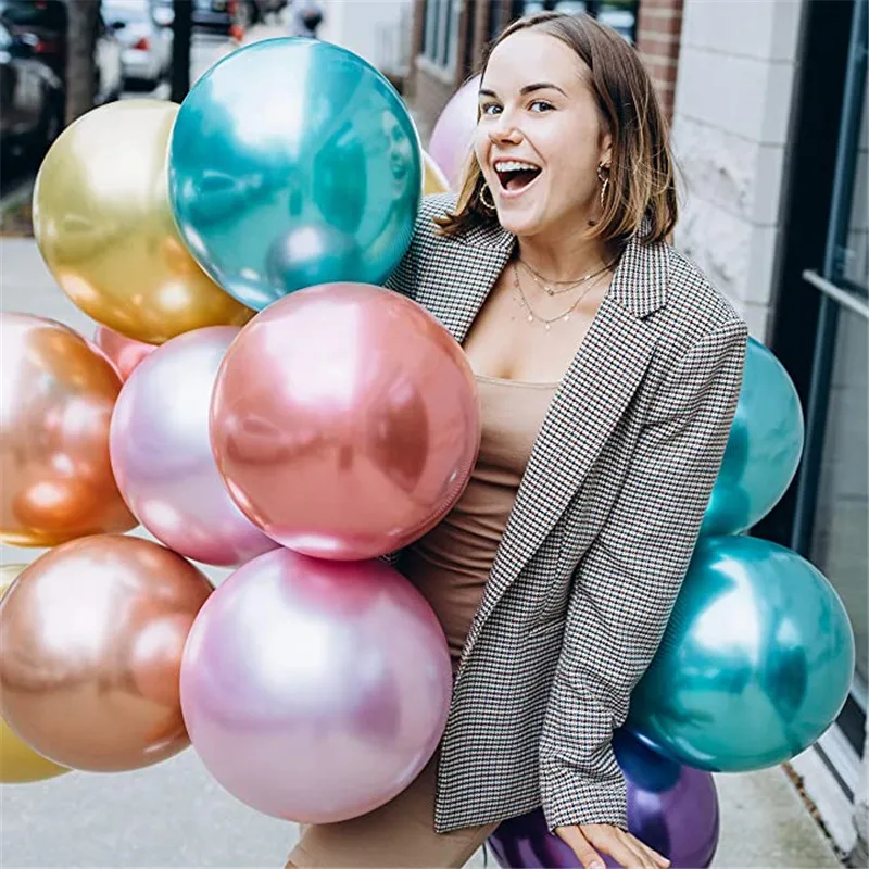 20 штук 12 дюймов Новые блестящие металлические жемчужные латексные воздушные шары для свадьбы с днем рождения цвета: золотистый, Серебристый Хром металлический шар воздушные гелиевые шарики