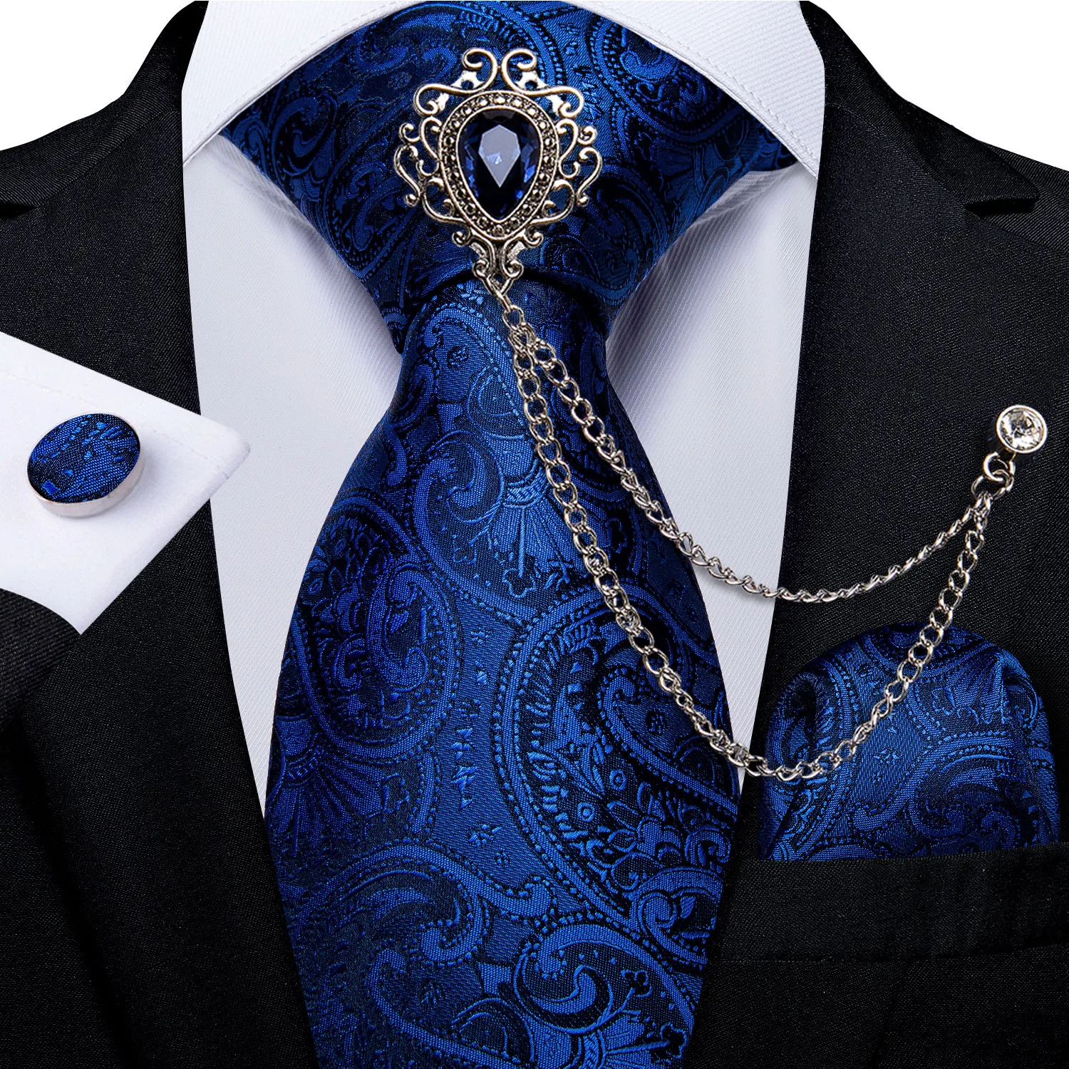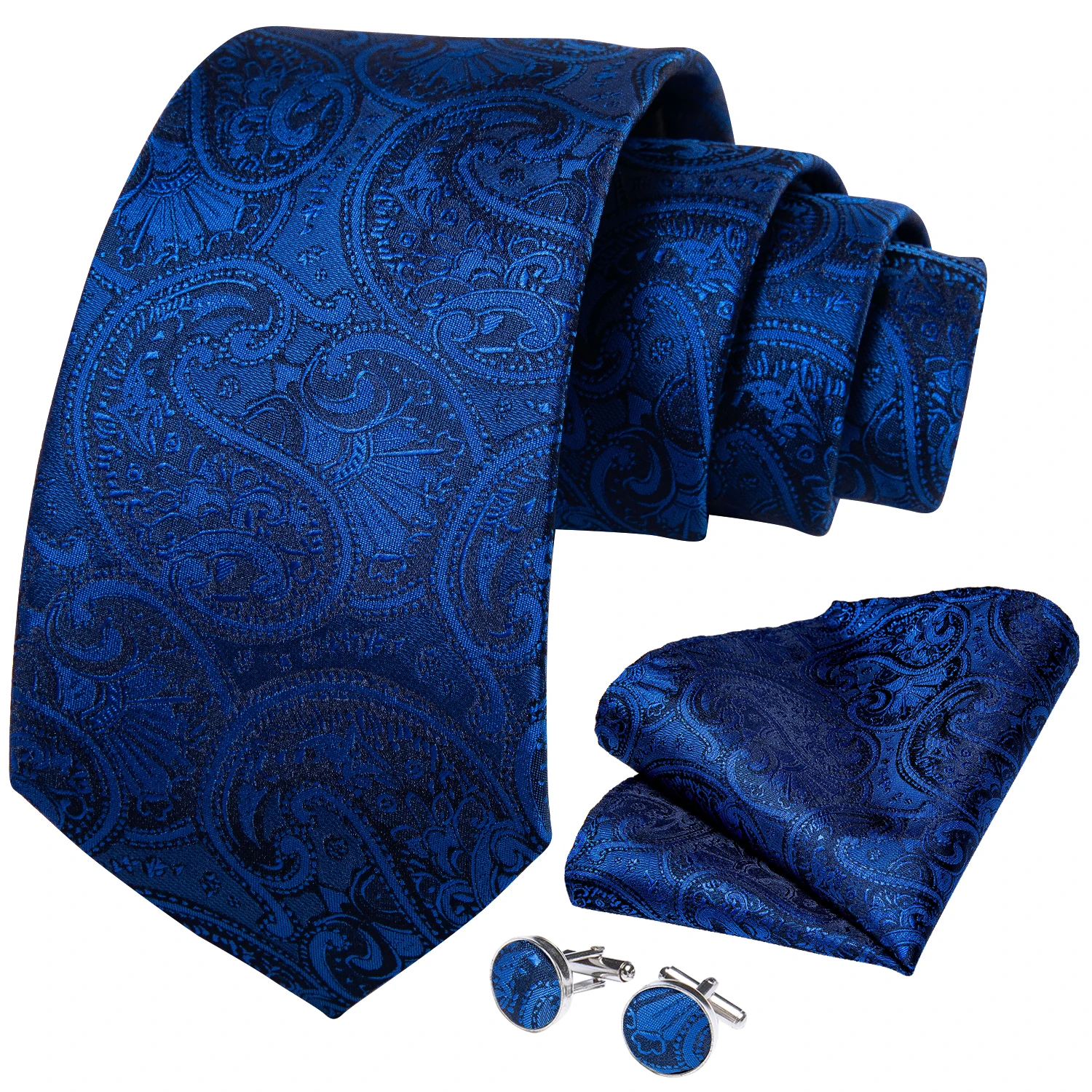 Королевские синие мужские шелковые галстуки Пейсли карманные Квадратные запонки роскошная брошь деловой свадебный подарочный набор галстуков для мужчин DiBanGu
