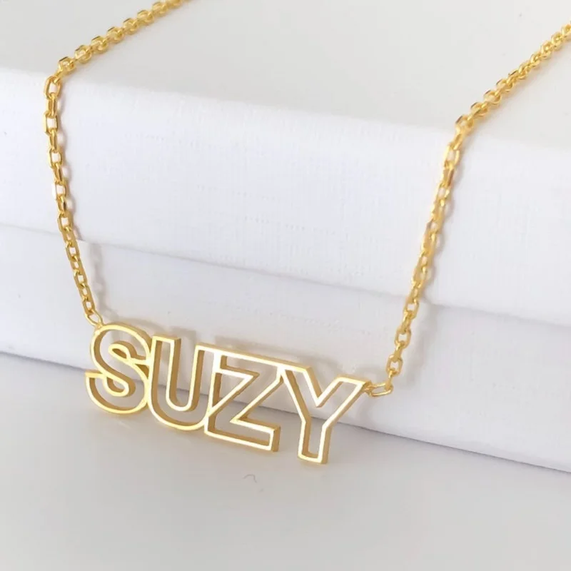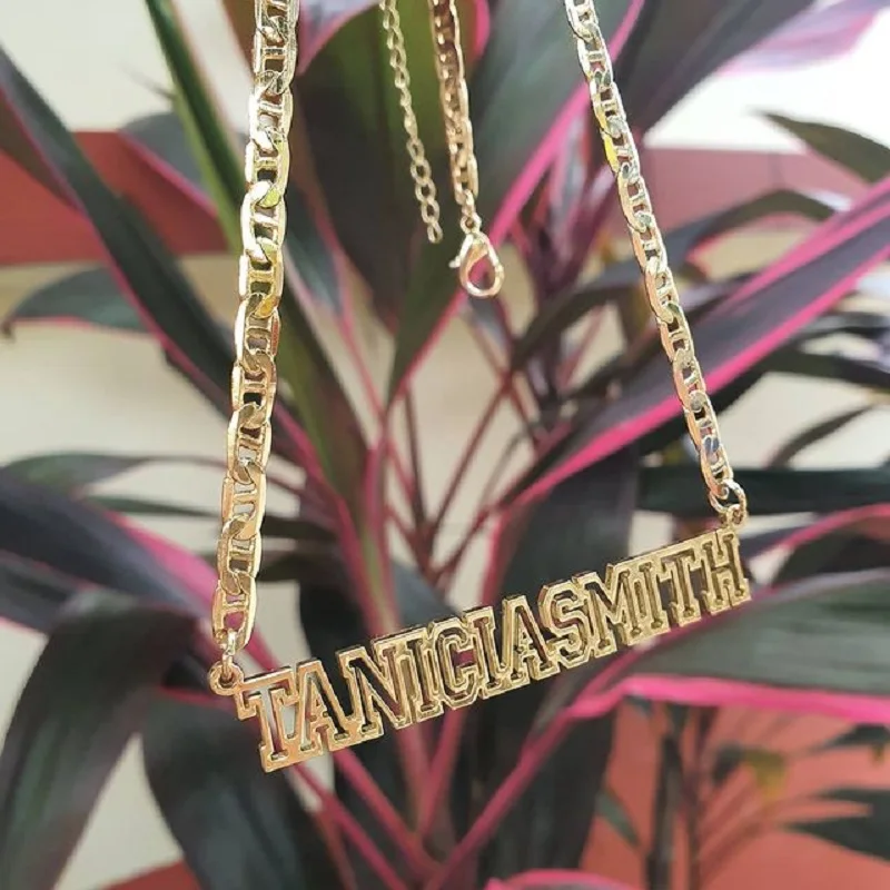 Персонализированные на заказ двухрядные полые Контурные имени ожерелье для женщин надпись табличка из нержавеющей стали ювелирные изделия лучшие друзья подарки