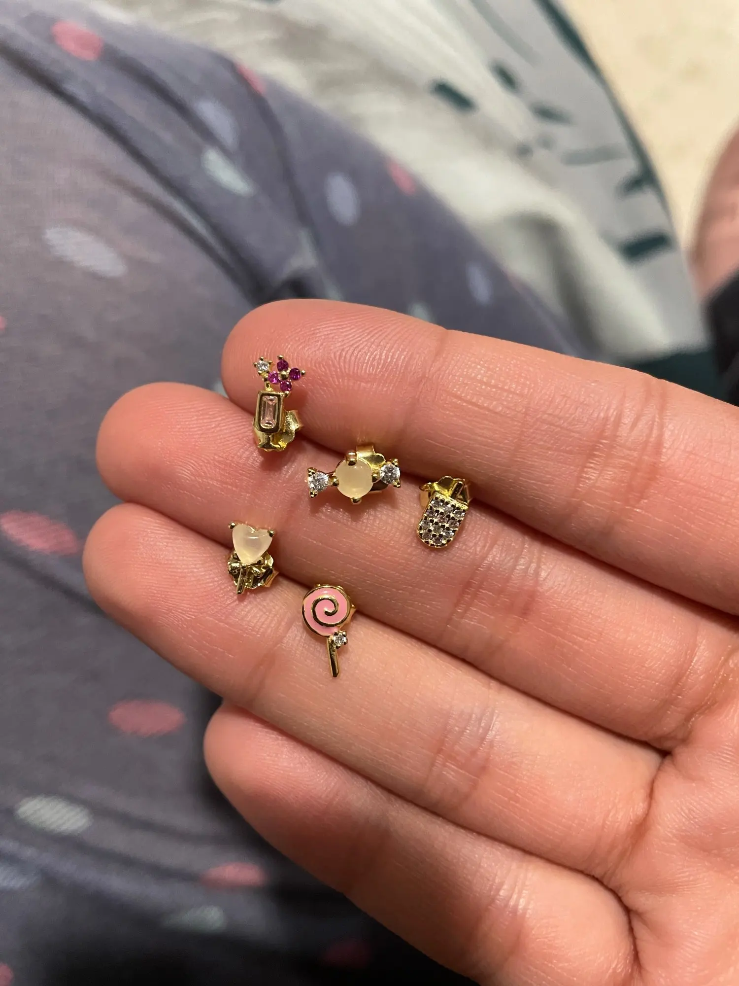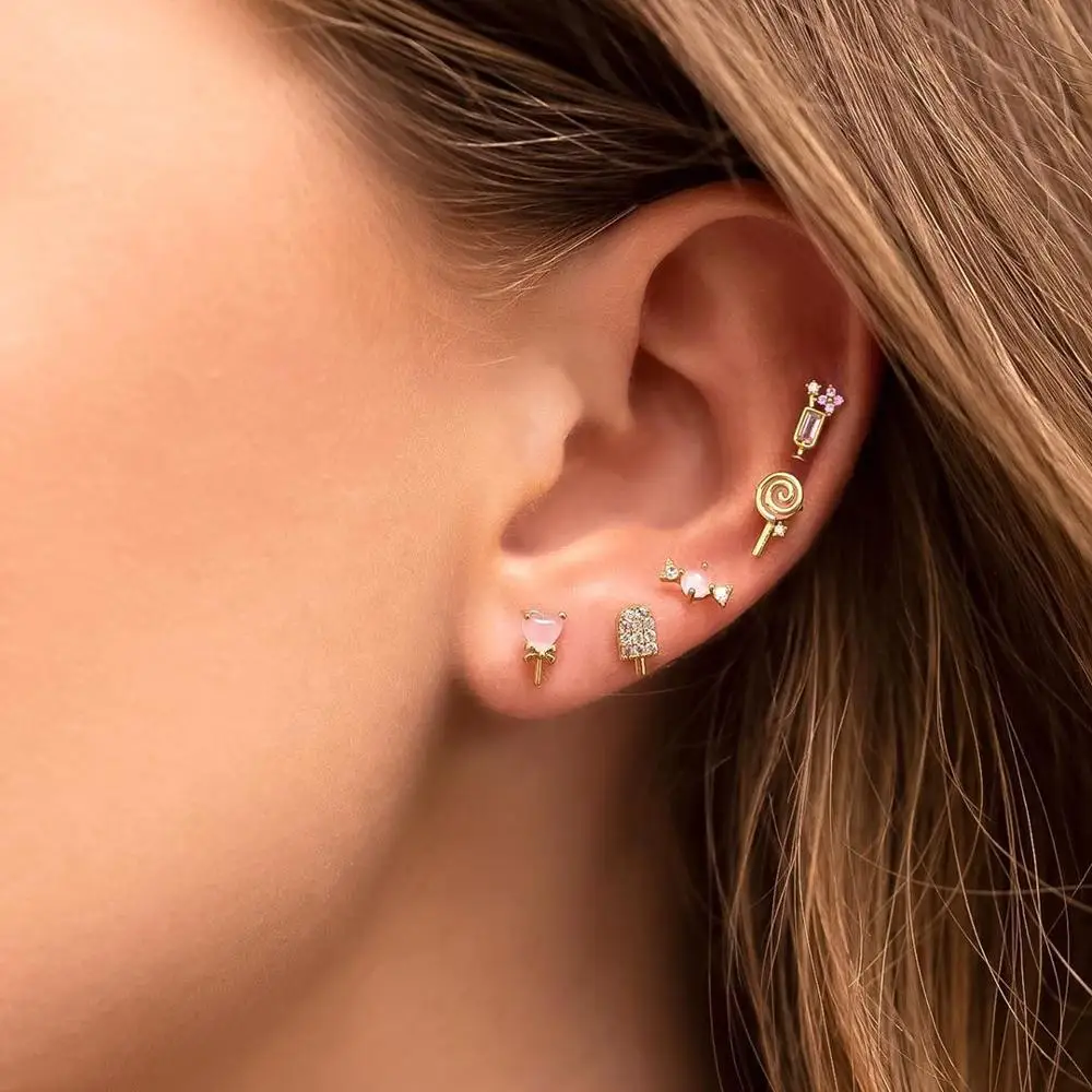 5 шт.комплект, серьги-гвоздики в виде конфет и мороженого