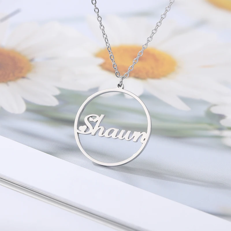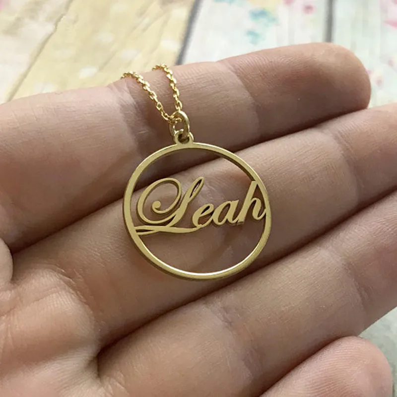 Заказное круглое имя, Очаровательное ожерелье для женщин и мужчин, золотой цвет, персонализированная табличка, колье, ювелирные изделия, кулон, ожерелье Femme