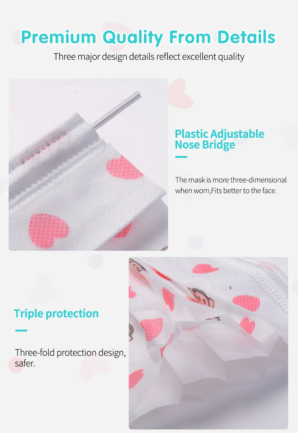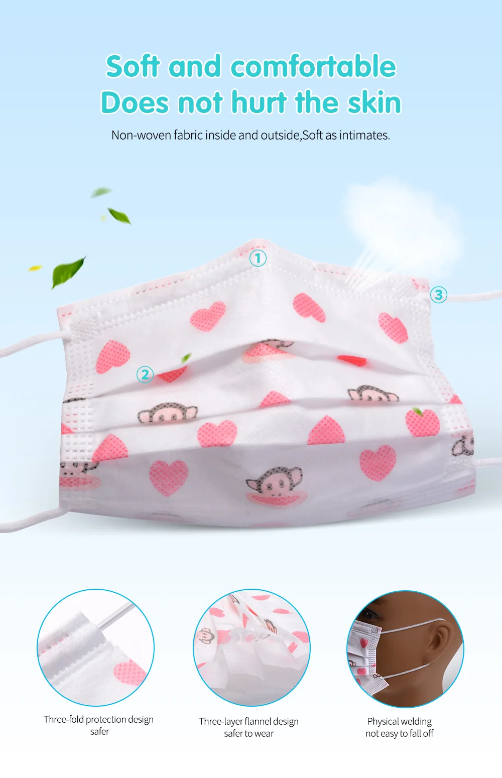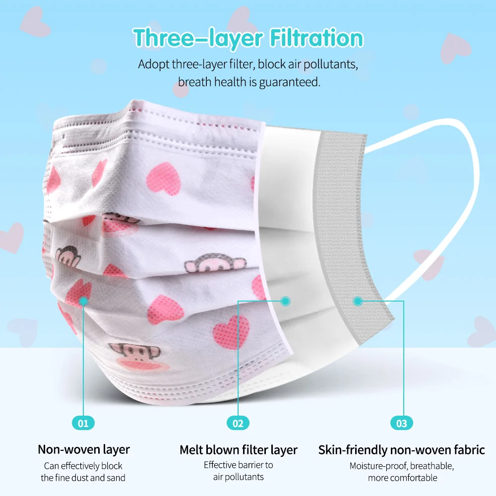 1. Идеально подходит для пыли, микробов, дыма, загрязнения, золы, пыльцы, ремесел, садоводства, путешествий, анонимности. 2. Изготовлены из нетканого материала, они отличаются хорошей устойчивостью к коже и удобны в носке. 3. Светильник с удобной и регулируемой резинкой, размер для большинства мальчиков и девочек. 4. Эластичные петли для ушей без давления на уши. 5. Очень подходит для детей во все сезоны.
