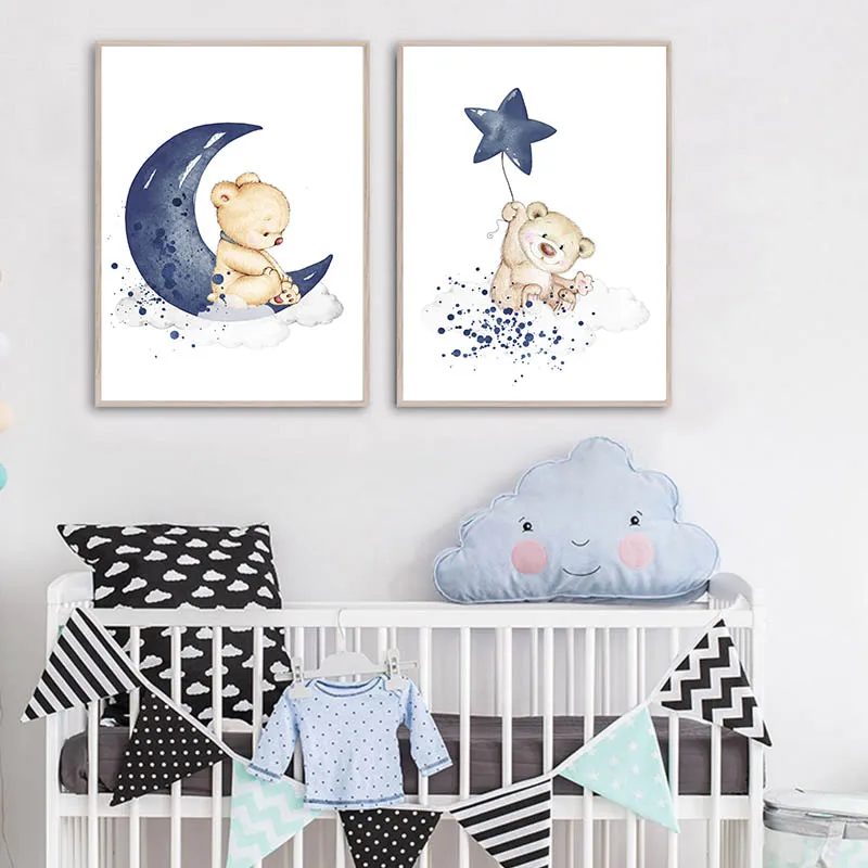 Мятно-зеленого цвета с рисунком медведя Луна животных Плакат для де...