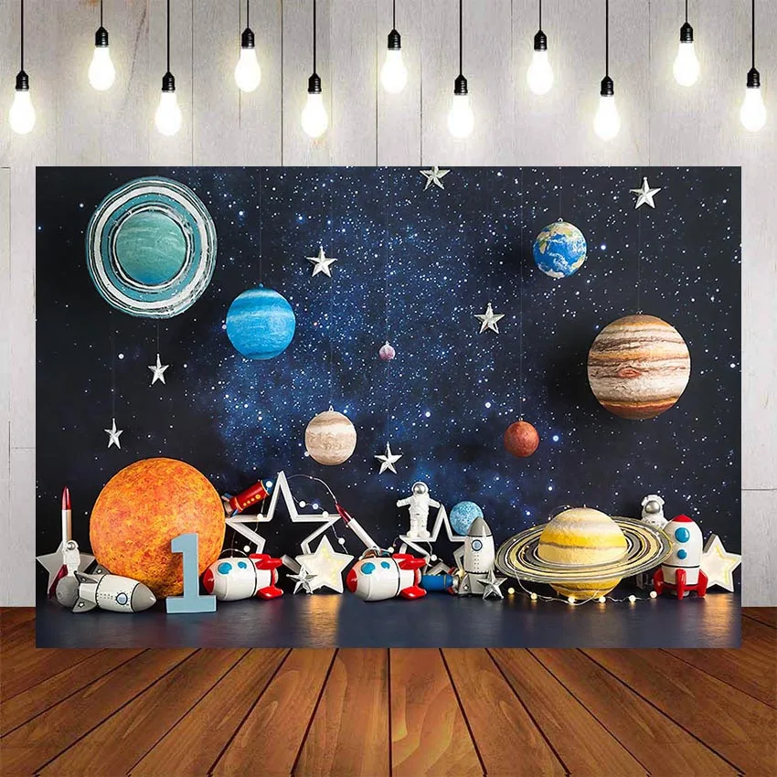 Фон для фотосъемки Mehofond на 1-й день рождения, космос, космонавт, ракета, астрономия, планета, галактика, Детская Фотостудия