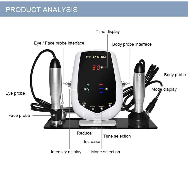 Формально говоря, радиочастотность является своего рода электромагнитным спектром. Это высокочастотная и переменная Электромагнитная волна. Когда RF воздействует на кожу, он сделает коллаген кожных волокон нагреваемым до 45 °C -65 °C. Затем коллагеновое волокно будет сокращаться в течение короткого времени, что может затянуть дряблою кожу и стимулировать коллаген для роста. Благодаря этому RF energy побудит слой дермы быть твердым и эластичным. То есть, чтобы подтянуть кожу.