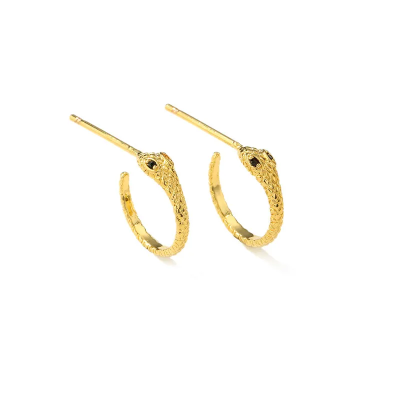 Серьги-кольца в виде змеи с кристаллами циркония
