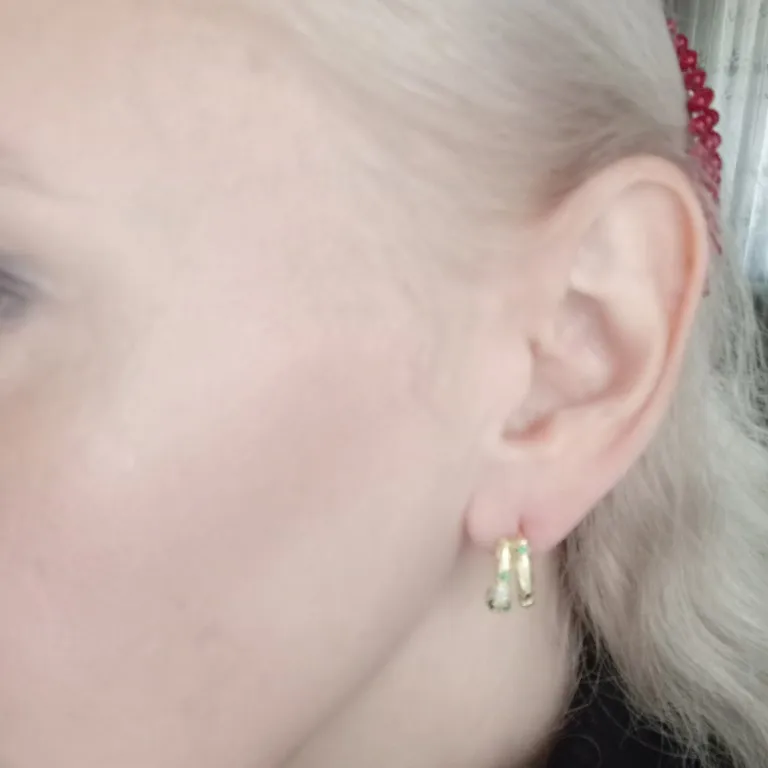 Серёжки очень красивые. Единственное они слишком изогнутые и очень тяжело одеваются. Был даже брак. И я разорвала дырку себе.