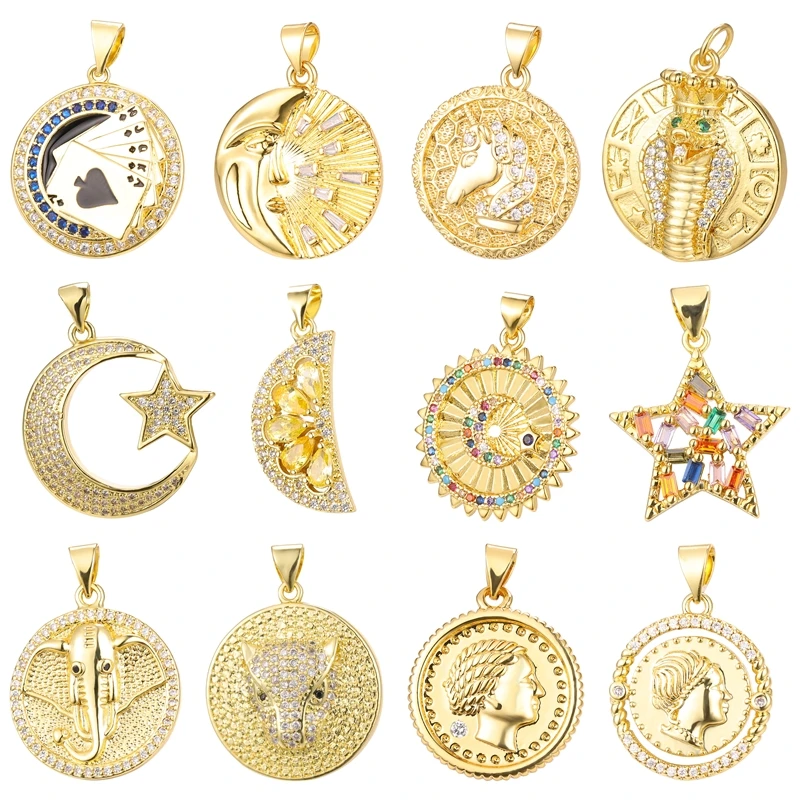 Роскошная золотая луна, Лев, слон, пчела, дерево, корона, змея, Подвески ручной работы, модные браслеты с подвесками, изготовление ожерелий