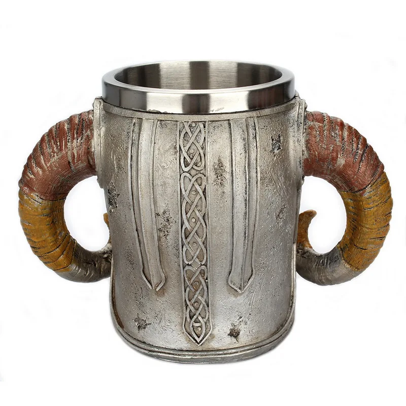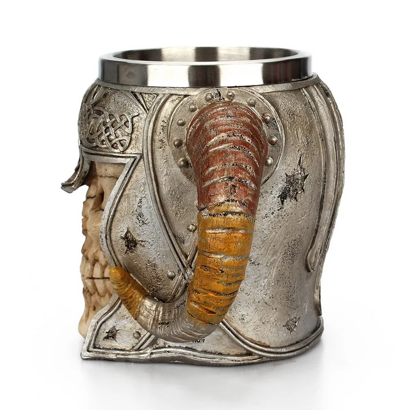 Пивная кружка в стиле ретро с рожками, из нержавеющей стали, с черепом рыцаря, для Хэллоуина, кофе, чая викингов, украшение для паба, бара