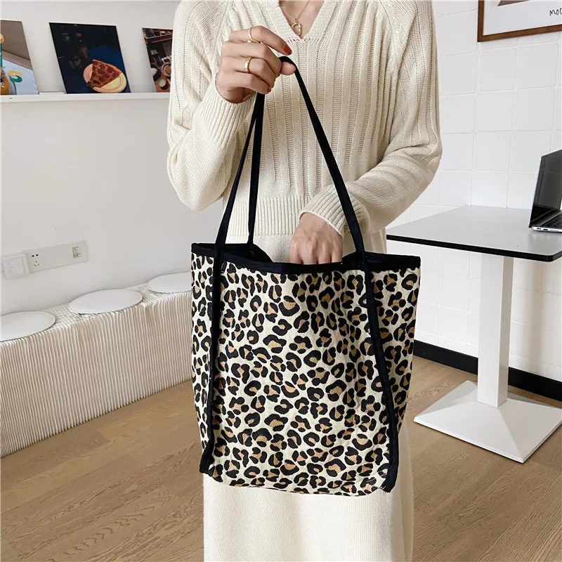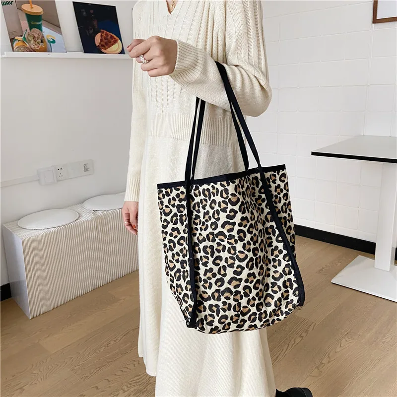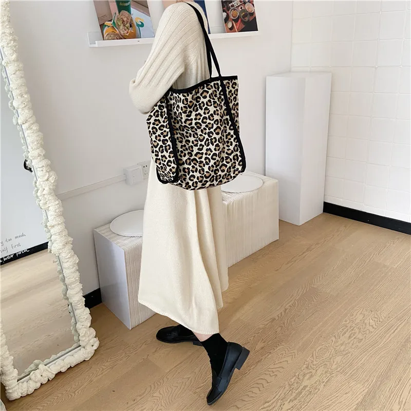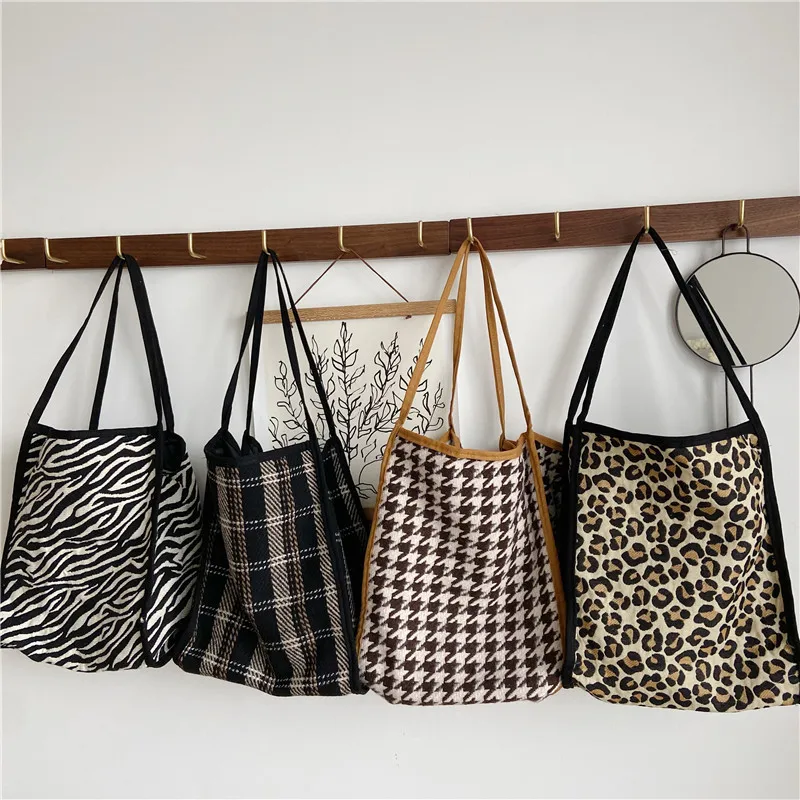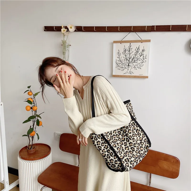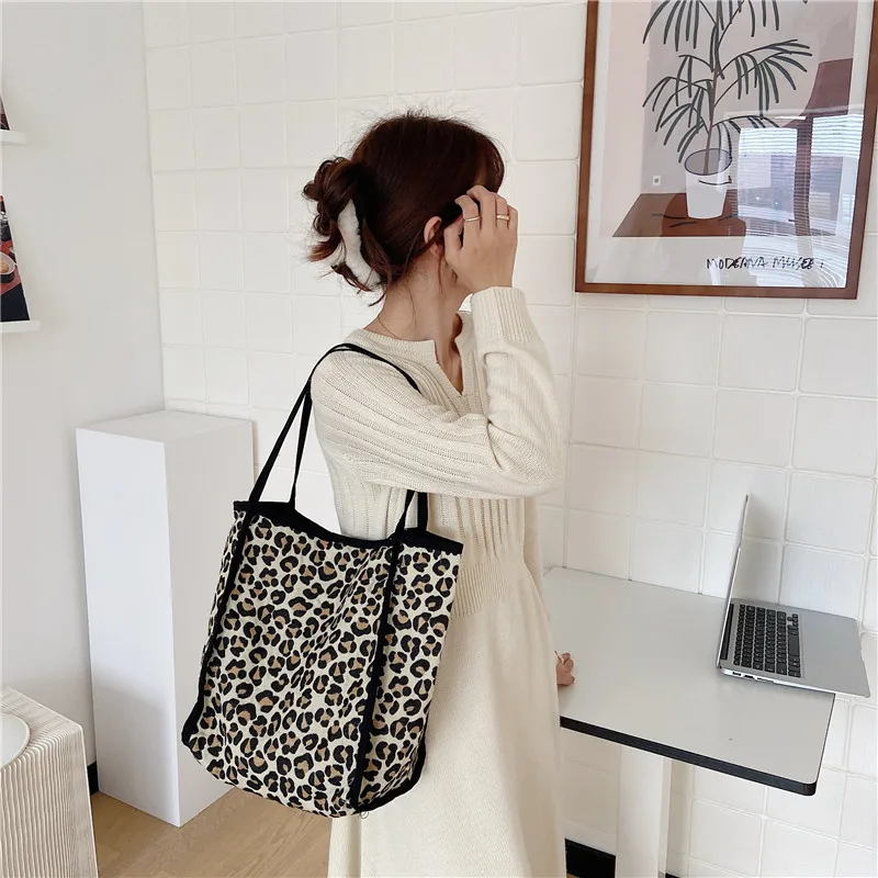 Youda 2021, зимняя Корейская сумка через плечо, клетчатая, с леопардовым принтом, большая сумка, холщовая, пакет для шоппинга