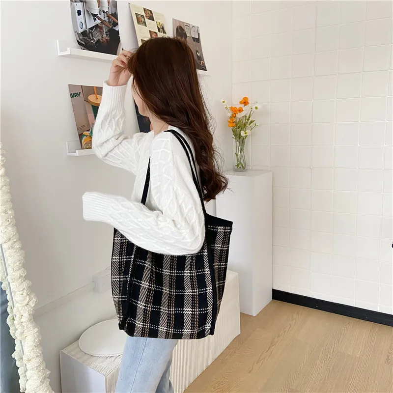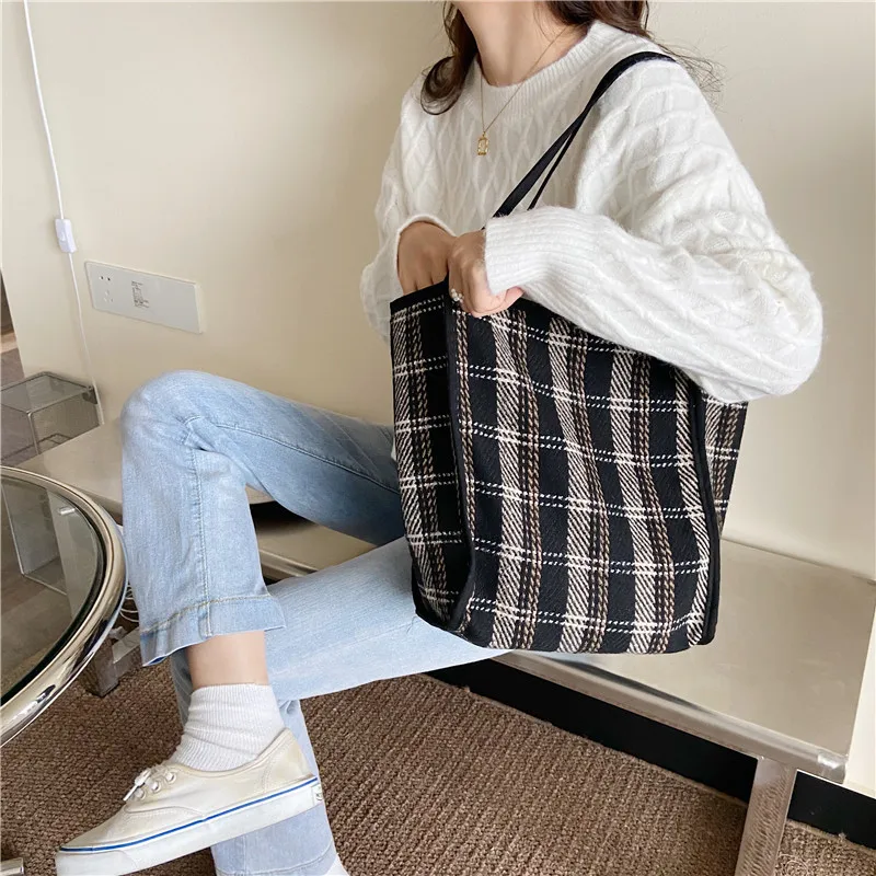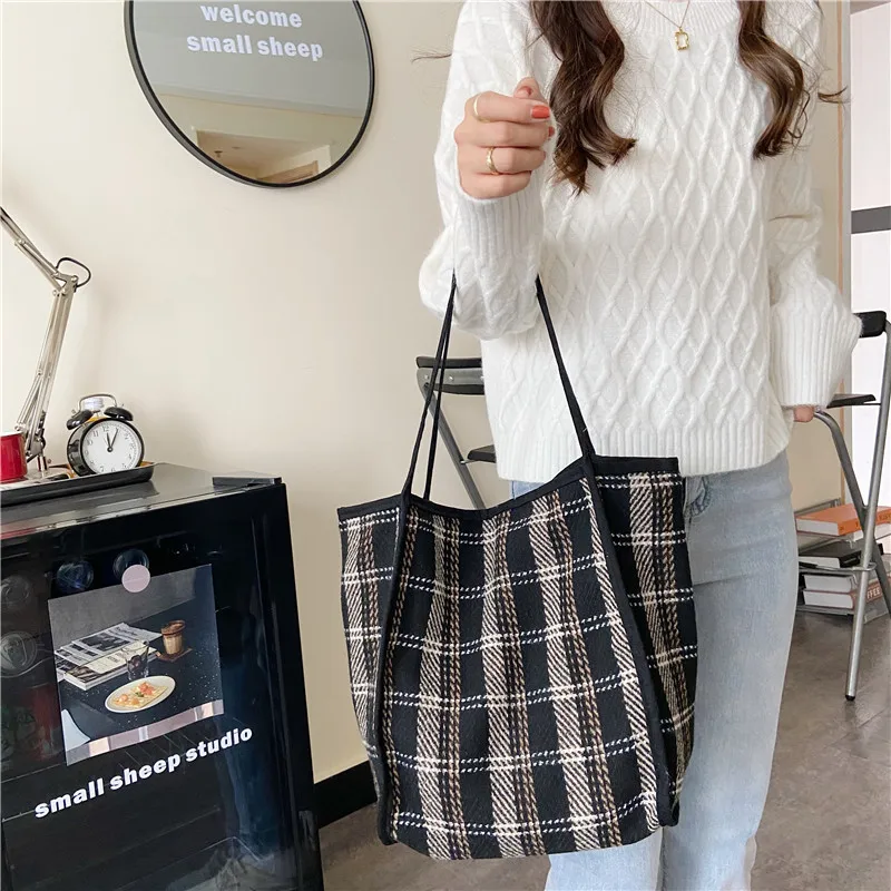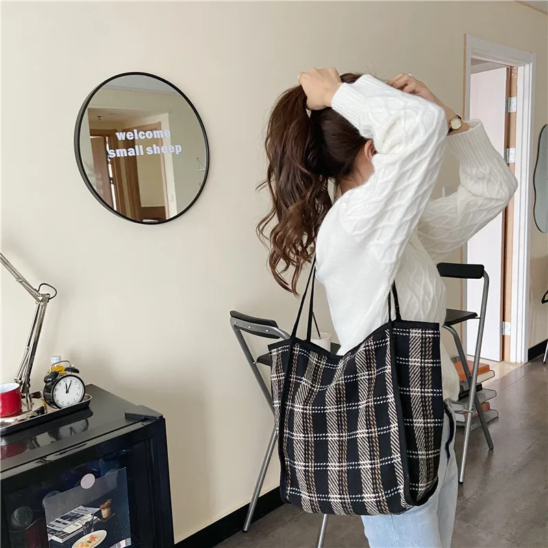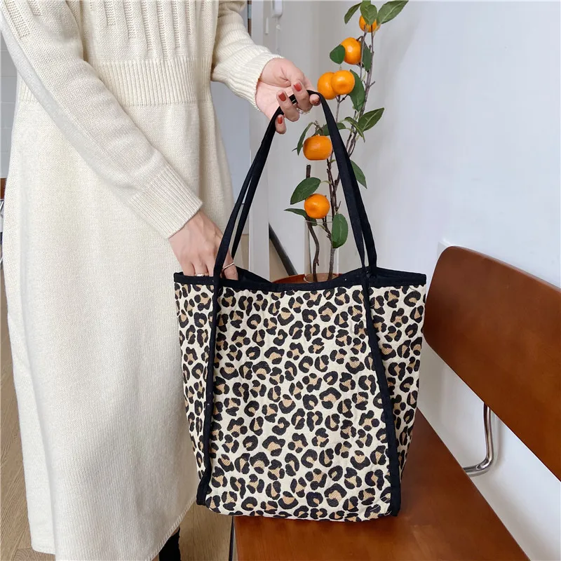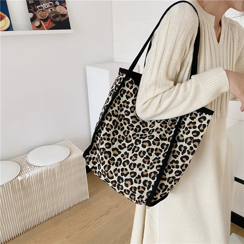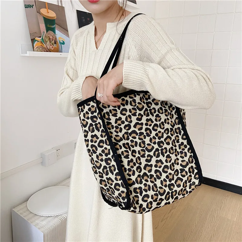 Youda 2021, зимняя Корейская сумка через плечо, клетчатая, с леопардовым принтом, большая сумка, холщовая, пакет для шоппинга