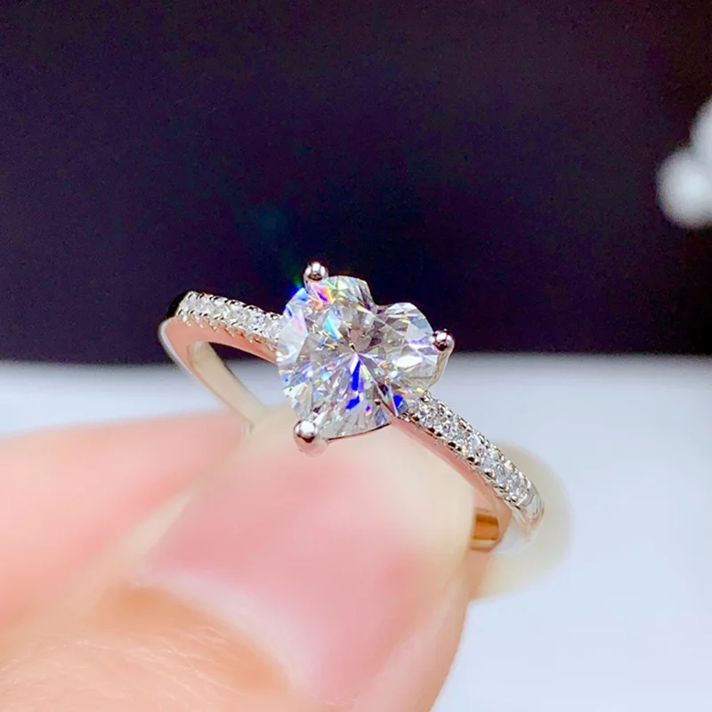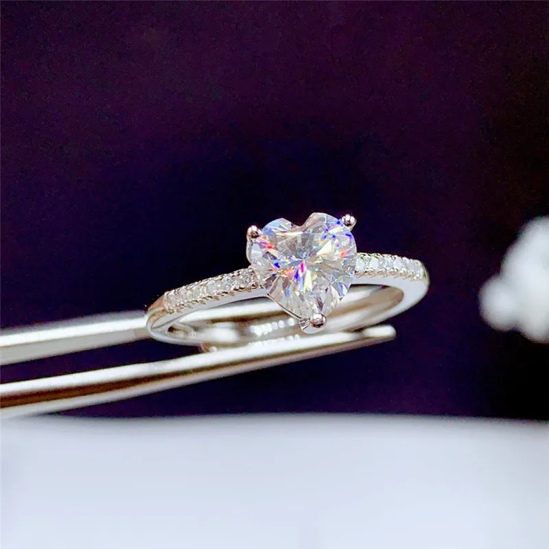 Муассанит кольцо 1CT VVS 6,5 мм Сердце Форма лаборатории с сертификатом, производство Китай, ювелирные украшения для женщин свадебный подарок реальные 925 стерлингового серебра