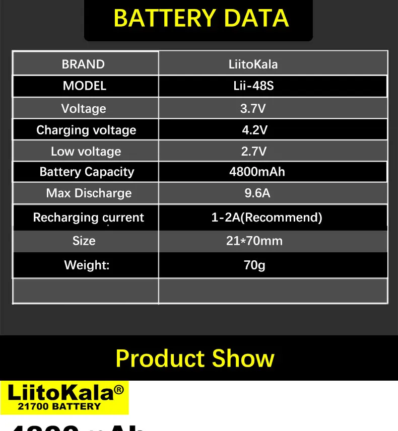1-4 шт. LiitoKala Lii-48S 3,7 В 21700 4800 мАч литий-ионная аккумуляторная батарея 9,6 А мощность 2C Скорость разрядки тройные литиевые батареи