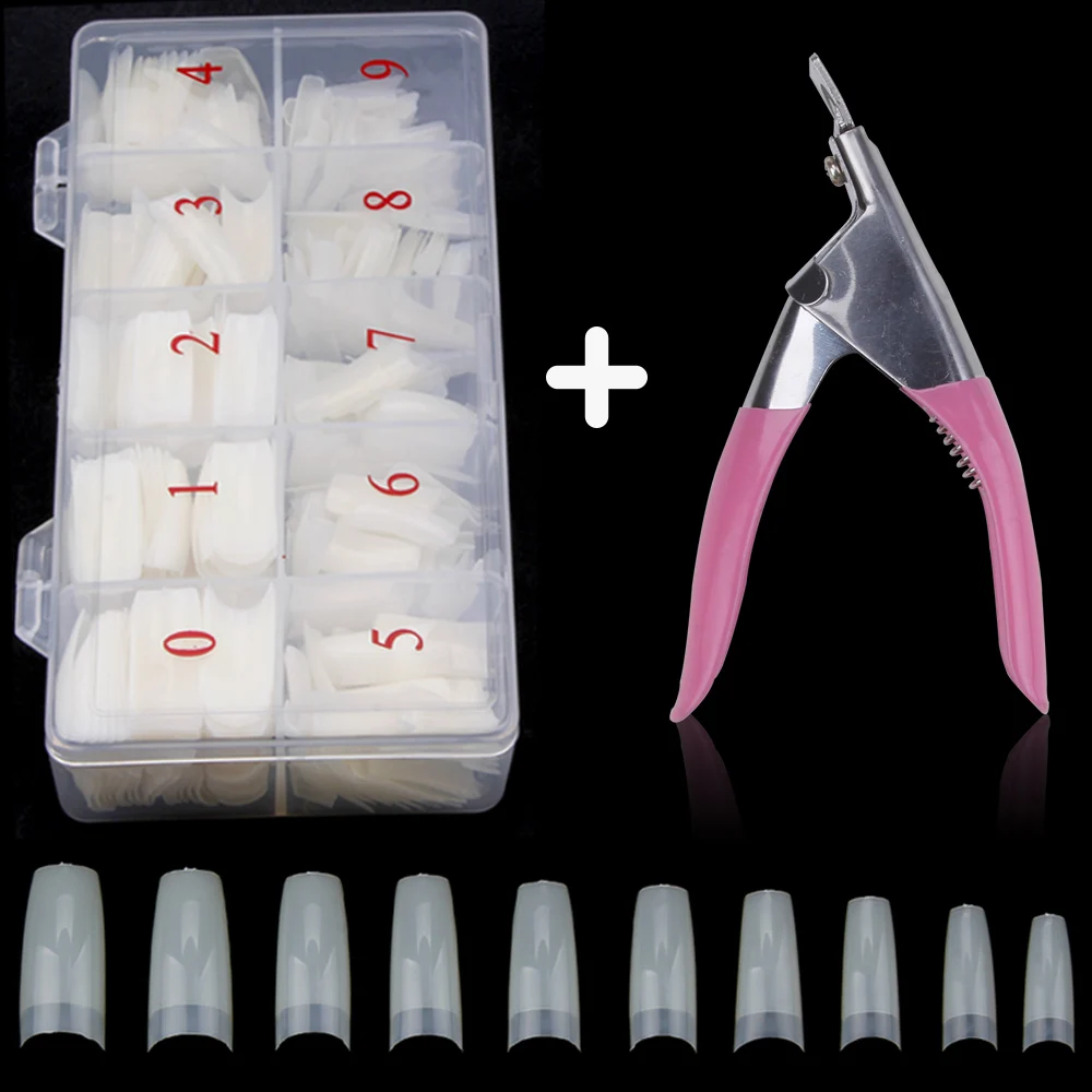 500 шт.кор. искусственные накладные ногти полное покрытие ногтей Цветной накладные ногти с накладные кусачки для ногтей гроб Французский Поддельные инструменты для маникюра