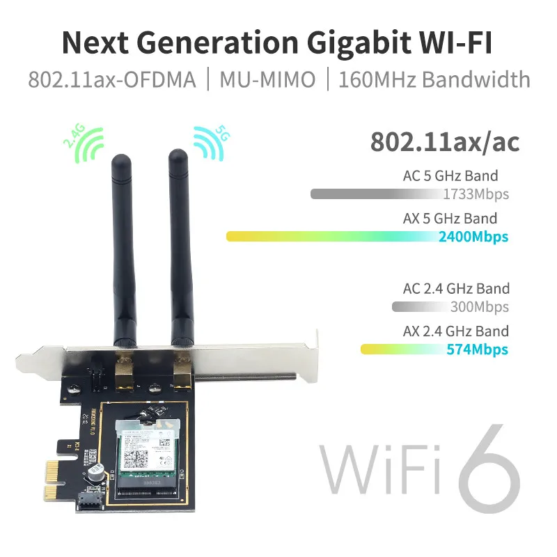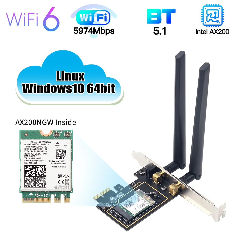 Беспроводной адаптер PCI-e 3000 Мбитс Intel AX210 wifi 6E Wlan Card Bluetooth 5,2 двухдиапазонный 2,4 ГГц5 ГГц MU-MIMO AX200NGW 802.11ax