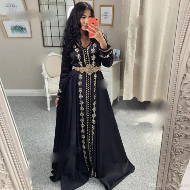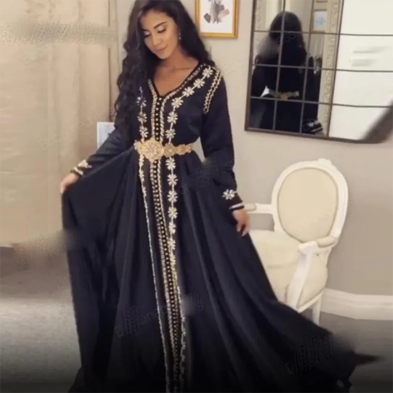 Элегантный Черный Кафтан Вечернее платье с кружевной аппликацией платье с v-образным вырезом, одежда с длинным рукавом для женщин Дубайский мусульманский официальное мероприятие платья на заказ