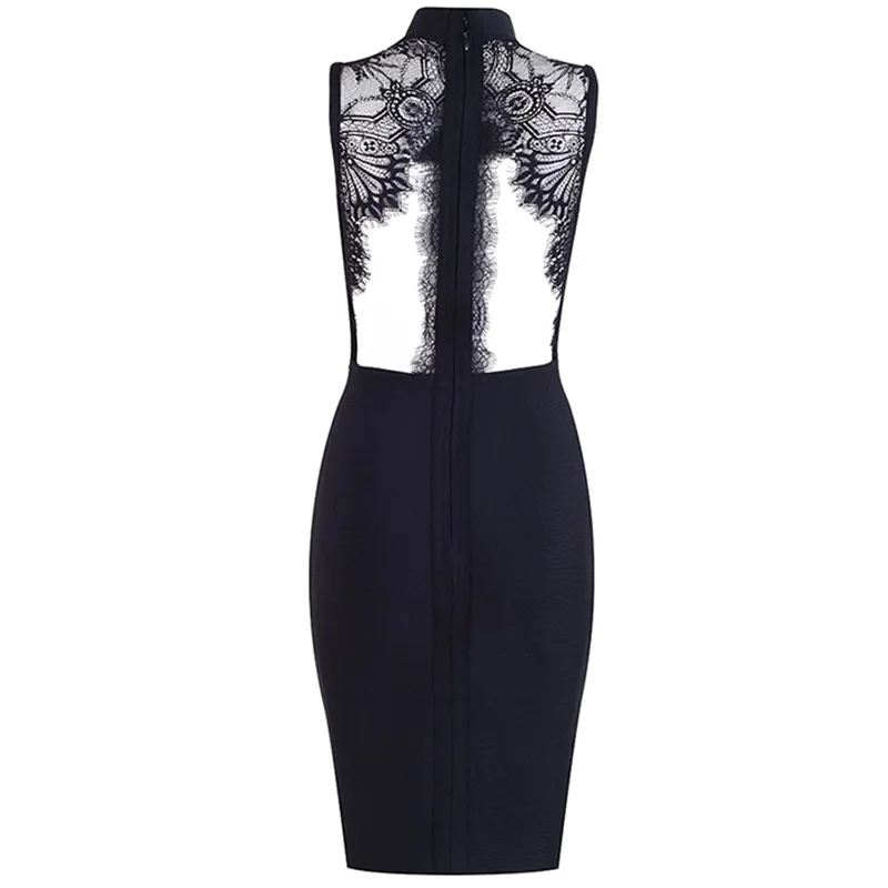 WillBeNice осенне-зимнее сексуальное кружевное черное Бандажное платье с v-образным вырезом для женщин 2020 открытые вечерние облегающие платья