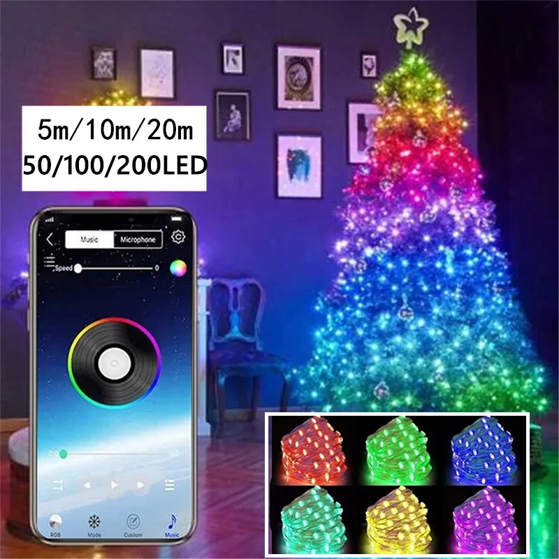 Рождественская светодиодная гирлянда с дистанционным управлением App, Рождественская яркая гирлянда с Bluetooth, индивидуальная гирлянда