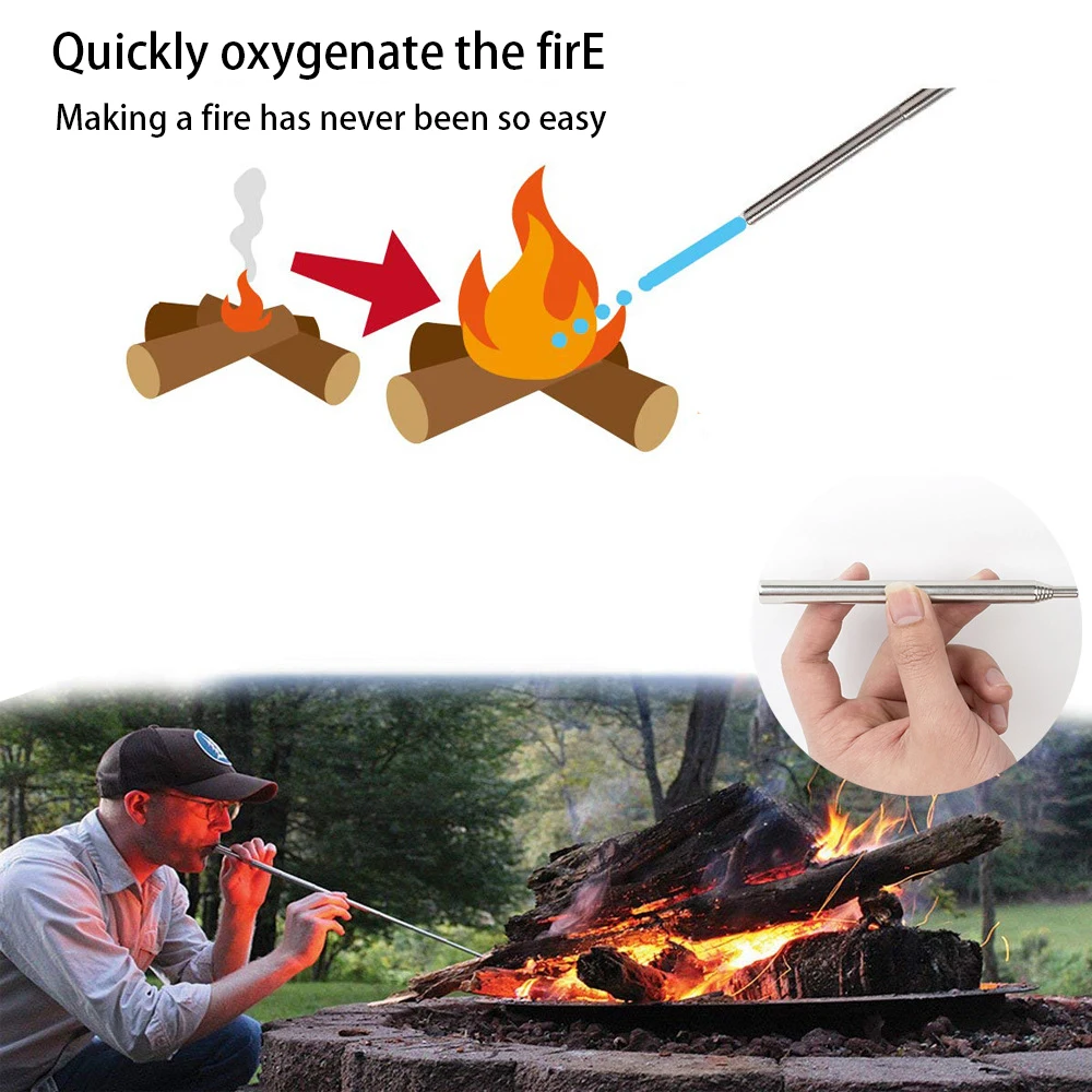 1 шт. трубка для выдувного огня, портативная трубка для стартера огня, трубка из нержавеющей стали для выдувного огня, телескопическая трубка, инструмент для выживания