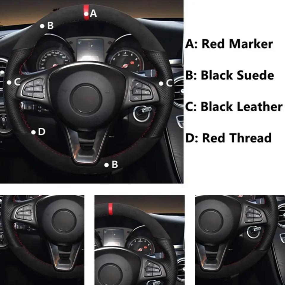 Сшитый вручную черный замшевый красный маркер Чехлы рулевого колеса...