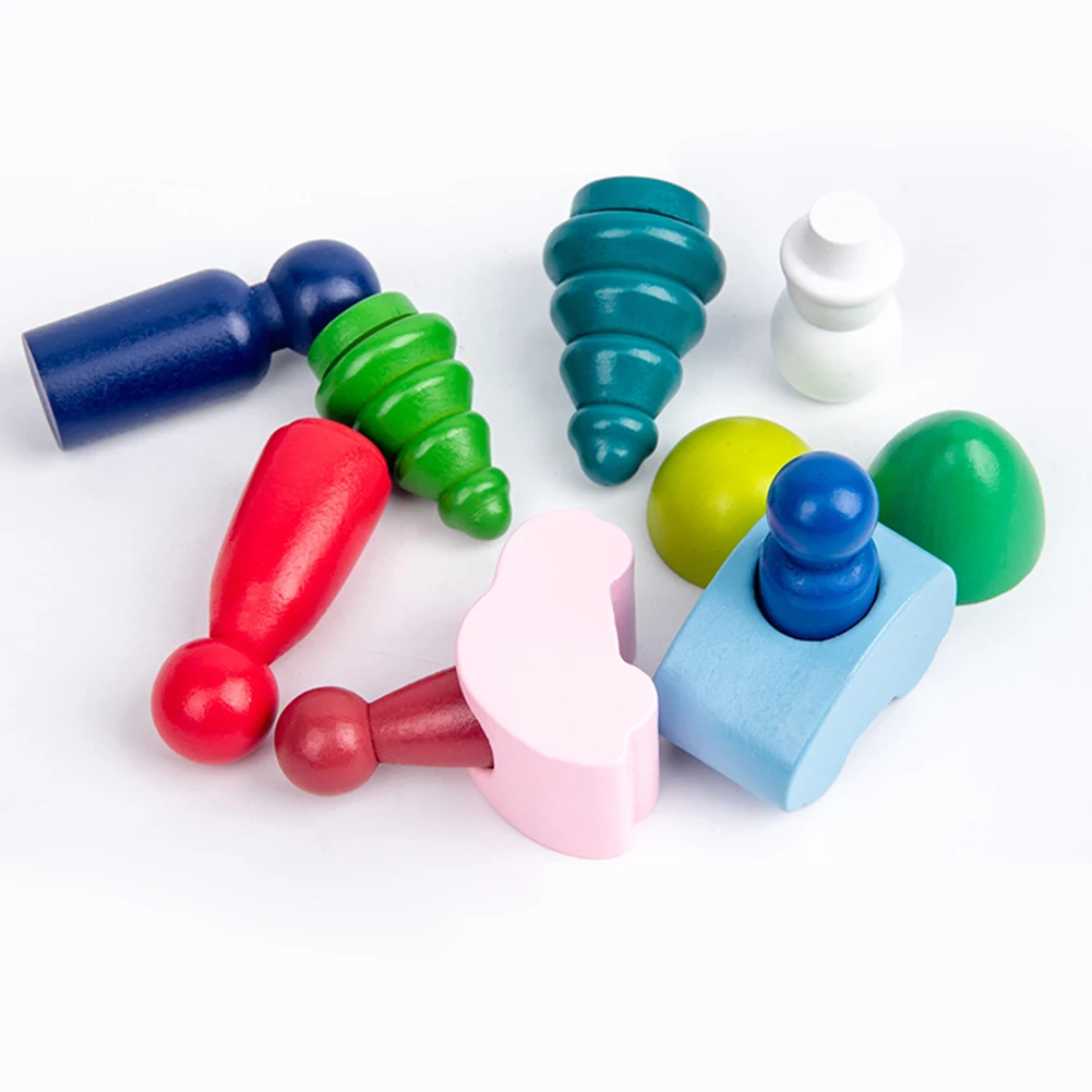 Монтессори Деревянные игрушки Красочные радужные блоки DIY укладка игры Дети Обучающие Развивающие Дети подарок