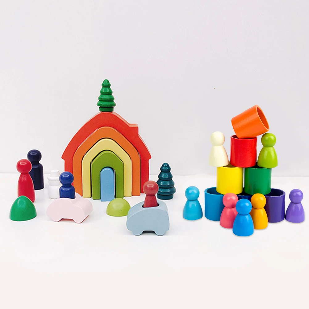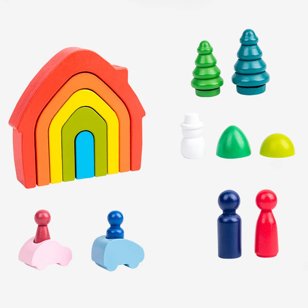 Деревянный строительный конструктор Монтессори, Радужный дом, набор...