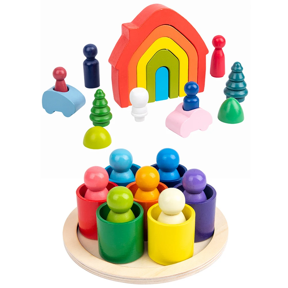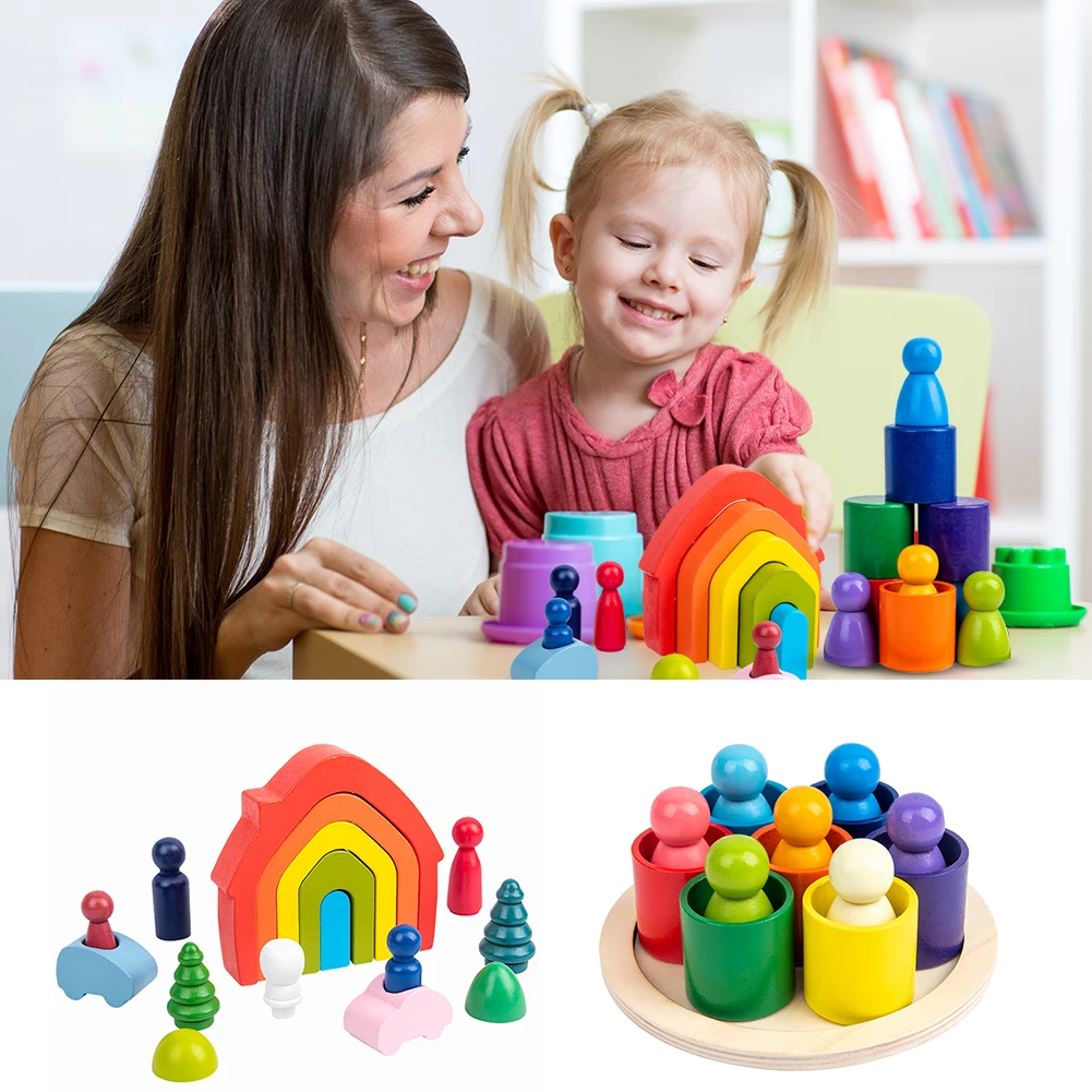 Набор радужных блоков для маленьких людей, Деревянные Детские пазлы...