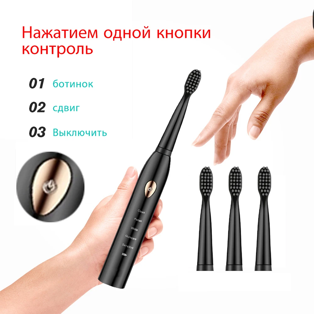 Мощная ультразвуковая электрическая зубная щетка для взрослых с функциями отбеливание, чистка зубов, зарядка от USB, моющаяся