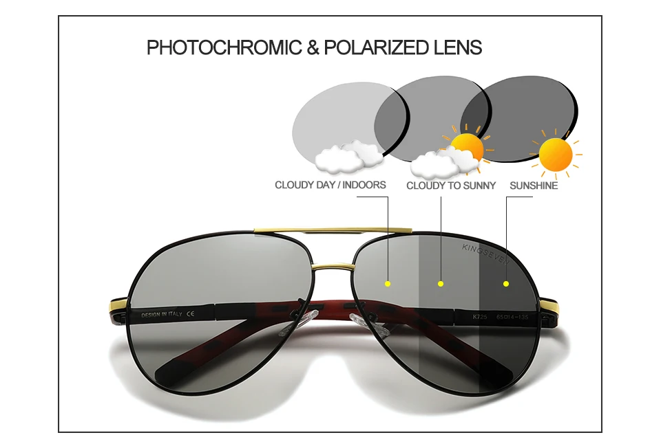 Солнцезащитные очки KINGSEVEN мужскиеженские, фотохромные поляризац...