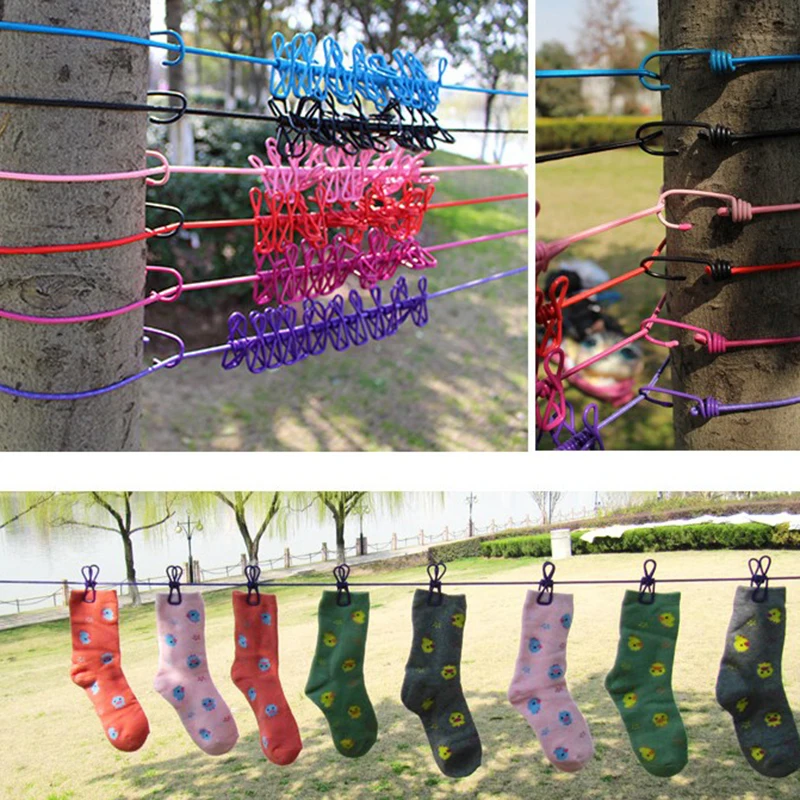 1,8 м ветрозащитная Веревка 10 Цвета Портативный путешествия эластичный эластичная бельевая верёвка с зажимом зажимы, крючки, станок и инструментов для использования на открытом воздухе