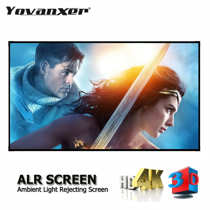 Экран проектора для домашнего кинотеатра, с защитой от окружающего светильник, 84, 92, 100, 120, 133, 150 дюймов, без рамки