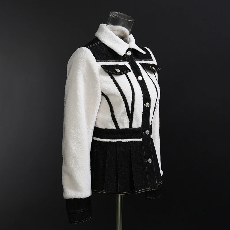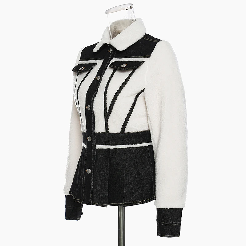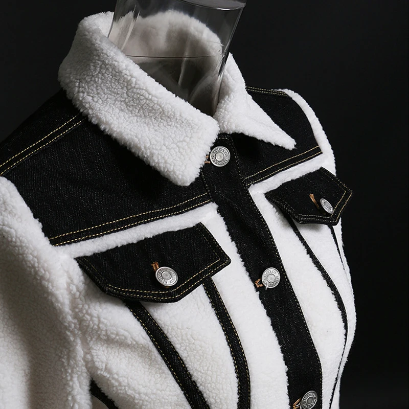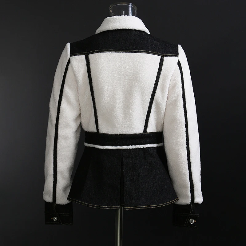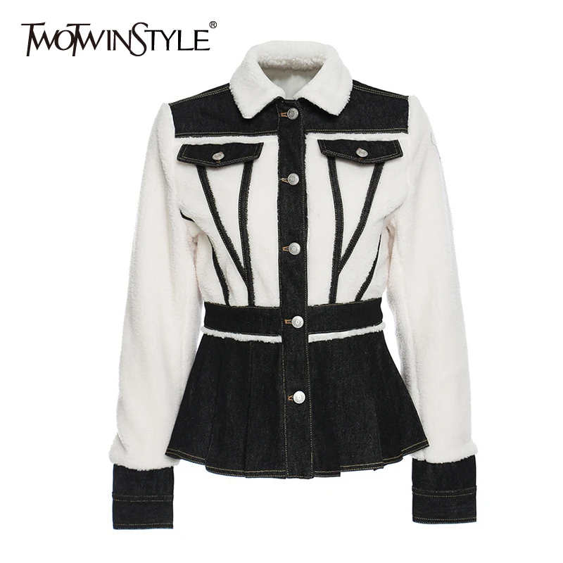 Женская Повседневная куртка TWOTWINSTYLE, повседневная куртка из овечьей шерсти с отворотом и длинным рукавом, с высокой талией, модная зимняя куртка