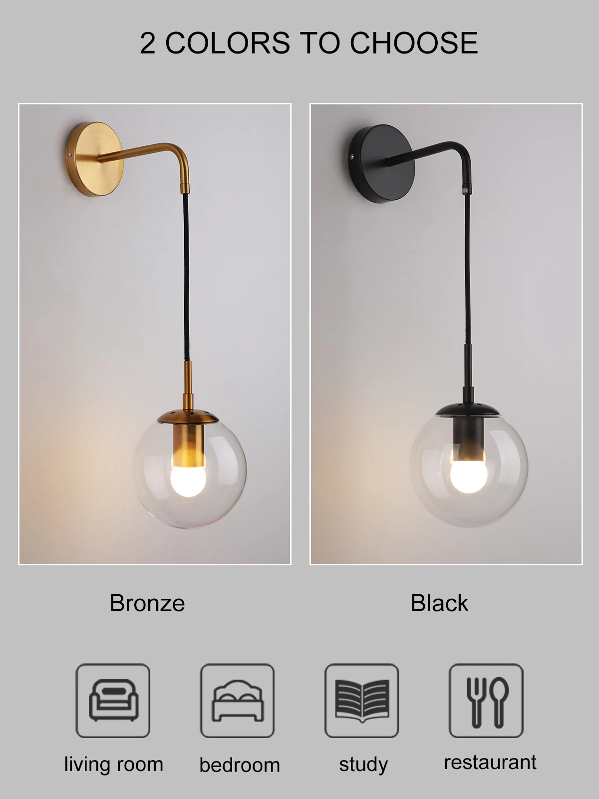 Настенные светильники в стиле лофт, стеклянный шар, ретро, старинные настенные лампы для спальни, прикроватной тумбочки, гостиной, коридора, лестницы, нордическое Внутреннее освещение