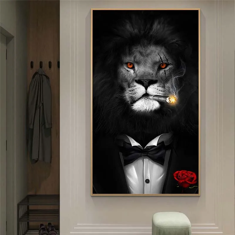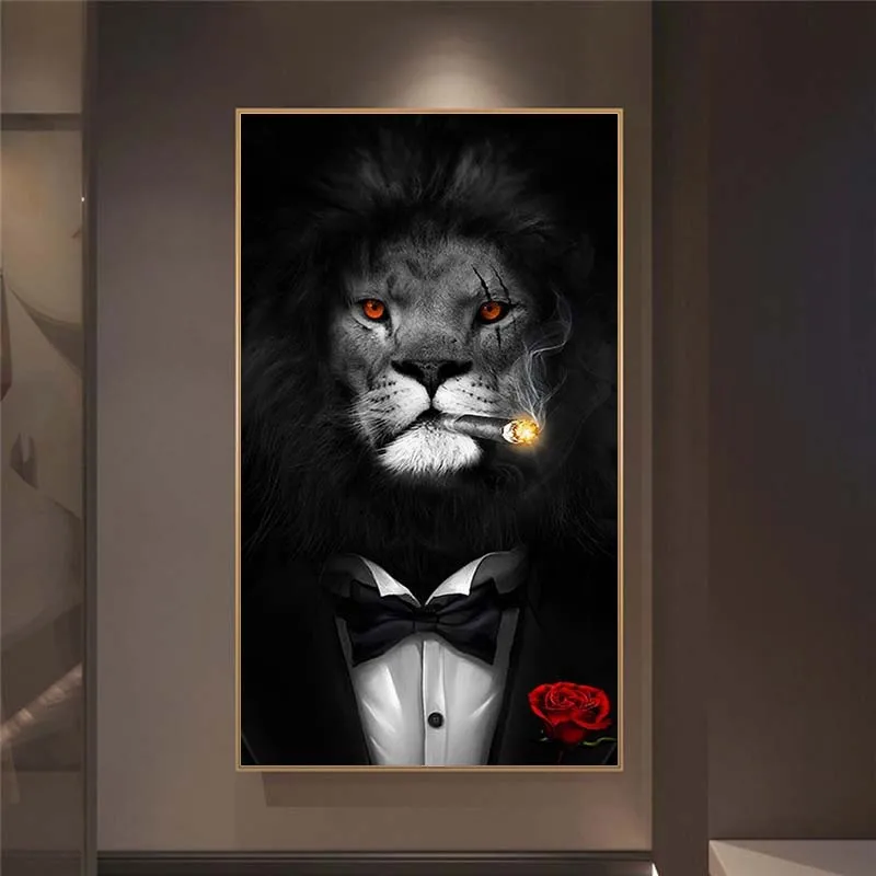 Современные изображения животных Rogue, холст с принтом на холсте, картина, забавный курительный Лев, настенный плакат для гостиной, домашний декор