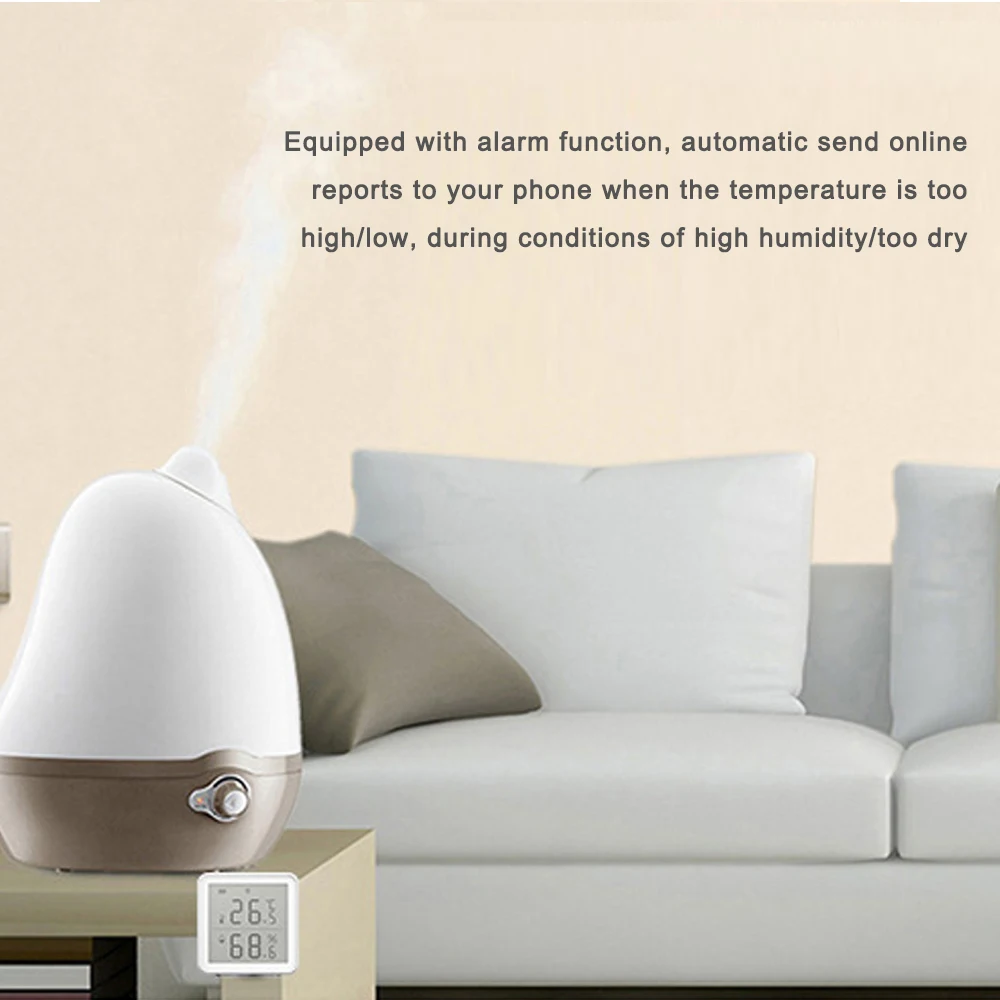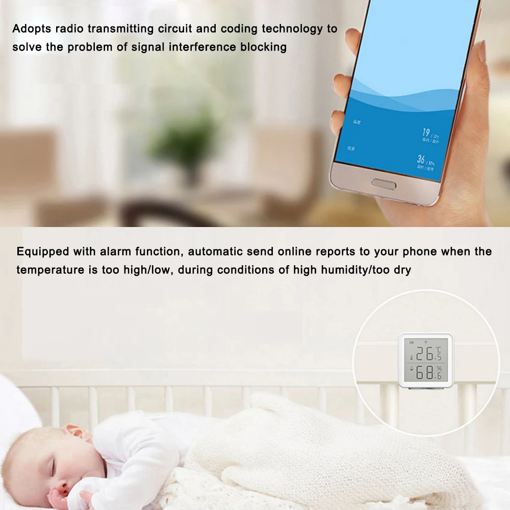 Этот датчик может использоваться для обнаружения изменений температуры, он может отображать температуру и влажность в реальном времени. Датчик отправляет сигналы температуры окружающей среды и влажности на фон через сеть Wi-Fi, а фон передает его на ваш мобильный телефон. Вы можете дистанционно контролировать свой мобильный телефон и поддерживать контроль температуры с помощью приложения Tuya. Подходит для дома, банка, отеля, офиса и т. д.Особенности:Принимает радиосвязь и технологию кодирования для решения проблемы блокировки помех сигнала.Различные режимы регулировки температуры, подходят для различных сценариев, легко настраиваются в соответствии с вашими требованиями.Сигналы передачи данных передаются по беспроводной сети, вы можете дистанционно контролировать свой мобильный телефон и поддерживать контроль температуры с помощью приложения Tuya.Питание от 3 * AA батареи, низкое энергопотребление, с длительным сроком службы батареи.Оснащен функцией контроля низкого напряжения, так что вы можете изменить батареи во времени.Оснащен функцией будильника, автоматическая отправка онлайн-отчетов на ваш телефон, когда температура слишком высокая/низкая, в условиях высокой влажности/слишком сухой.Дизайн анти-разборки в профессиональной области.Сплит-дизайн, с высокой надежностью.Характеристики:Название: датчик температурыМатериал: АБС-пластикКоммуникационный метод: WiFiСтандарт Wi-Fi: 802.11b/g/nКанал: 1-14@2.4GHzИсточник питания: DC4.5V (AA * 3 батареи,Не прилагаются)Расстояние связи: 70 метров (Открытый)Способ установки: размещение на рабочем столеТемпература: от-10 ℃ до 55 ℃Влажность: 0-100% относительная влажностьРазмер изделия: 64*64*28 мм/2,52*2,52*1,10 дюймовРазмер посылка: 68*68*50 мм/2,68*2,68 * 1,97inПосылка, вес: 160 г/5,64 унцийУпаковочный лист:1 * датчик температуры