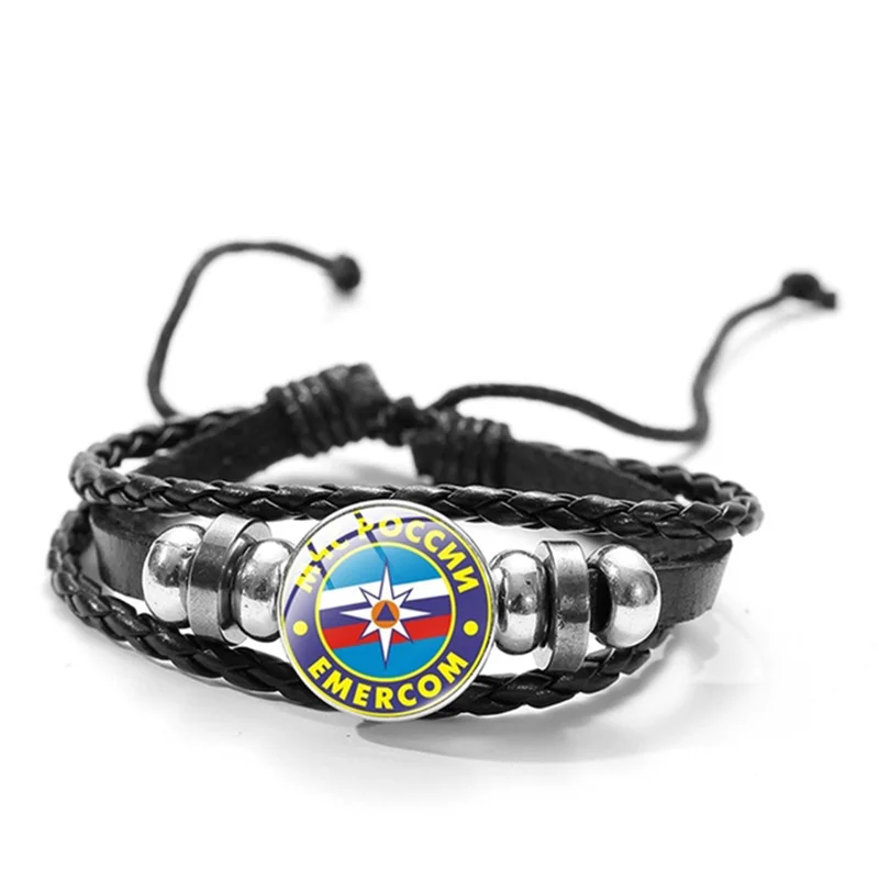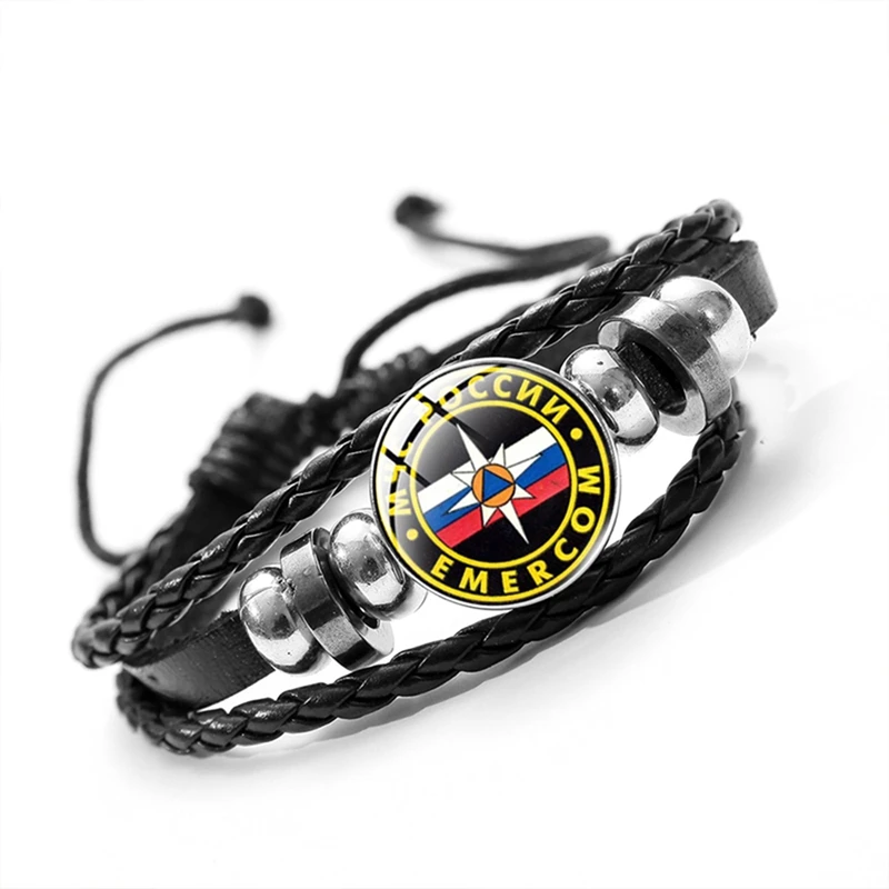 МЧС, многофункциональный браслет из РОССИИ для женщин и мужчин, подвеска со стеклянным куполом, черный регулируемый кожаный браслет, ювелирные изделия, подарок, Лидер продаж