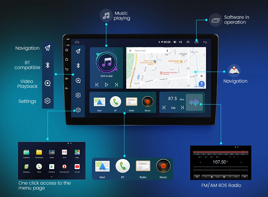 Встроенная Глобальная система позиционирования, всенаправленный дисплей карты, синхронный дисплей условий движения в реальном времени, быстрое и точное позиционирование