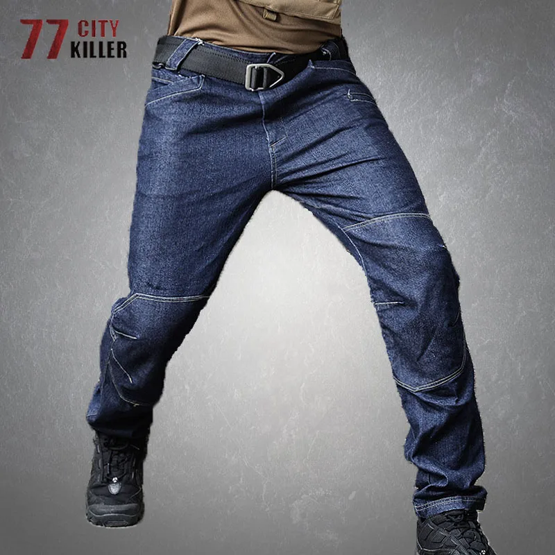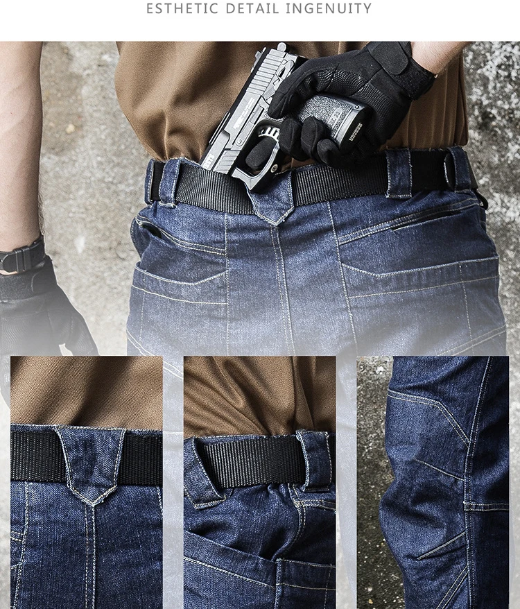 Джинсы мужские тактические в стиле милитари, брюки-карго из денима, повседневные эластичные штаны со множеством карманов, спецназ, армейские джоггеры