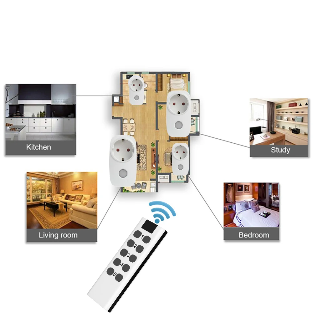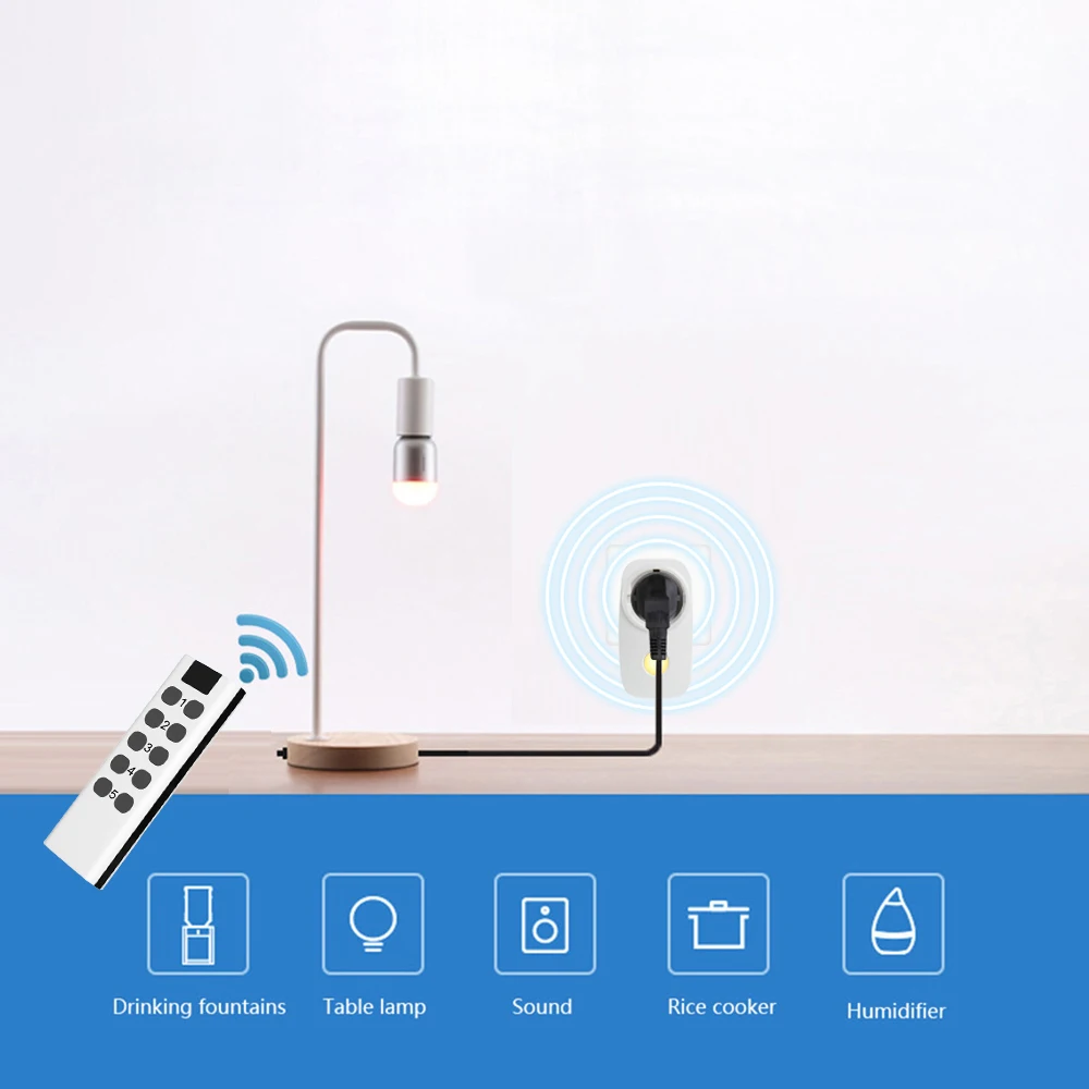 Особенности:◆Розетка может управляться вручную или с помощью пульта дистанционного управления.◆Ночной светильник может управляться только передатчиком.◆Приемник розетки по-прежнему будет оставаться в режиме «OFF» после отключения питания, даже когда питание снова включается.◆ Передатчик и приёмник можно свободно комбинировать (передатчик или приёмник должны быть от нашей компании), нужно только программировать в соответствии с руководством."1 розетка только" представляет только гнездо (за исключением пульта дистанционного управления); "1 удалитель только" представляет только пульт дистанционного управления (за исключением гнезда). Пульт дистанционного управления и розетка этого продукта не могут использоваться с другими продуктами, даже если частота одинаковая. Поэтому, если вы не приобрели этот продукт, пожалуйста, не приобретайте отдельный пульт дистанционного управления или гнездо, в противном случае вы не можете использовать его с вашим продуктом. Большое спасибо за понимание.Розетка-приемникВход Напряжение: 230 В переменного тока, 50/60 ГцМакс. Ток нагрузки: 16AЧастота передачи: 433 МГцПередатчикМощность передатчика: 1 секция DC12V 23A батареи(Убедитесь, что установка батареи правильная, продукт не включает батарею)Этот продукт может быть использован в сочетании с BroadLink RM 4pro, и он может быть удаленно управляется мобильными телефонами после ссылки.
